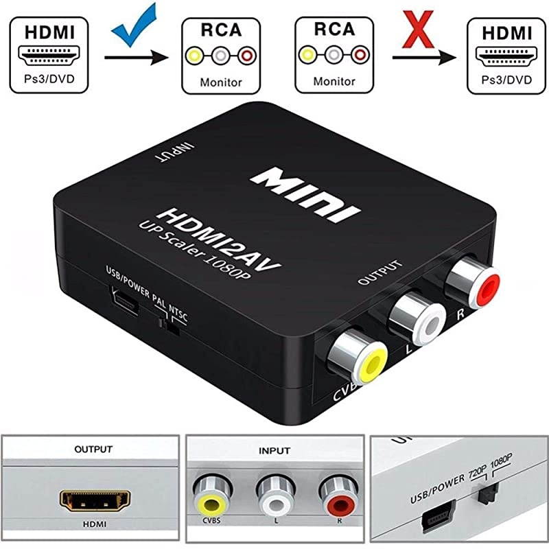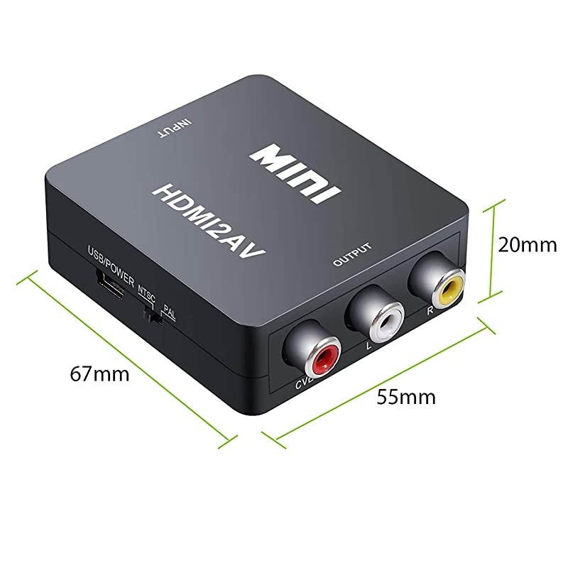 AV Signal Converter: -The Mini to AV signal converter which will convert video signal or audio signal to AV (CVBS) composite video signal and the FL/FR stereo audio signals, while support DVI system sideline signals. This mini adapter converts full 1080p signals to standard analog CVBS (standard definition 480i, 576i) by adjusting the resolution of the digital signals while supporting DVI system sideline signals. Now you can watch video with the corresponding FL/FR stereo audio signals from a laptop or computer on your older-model electronics.