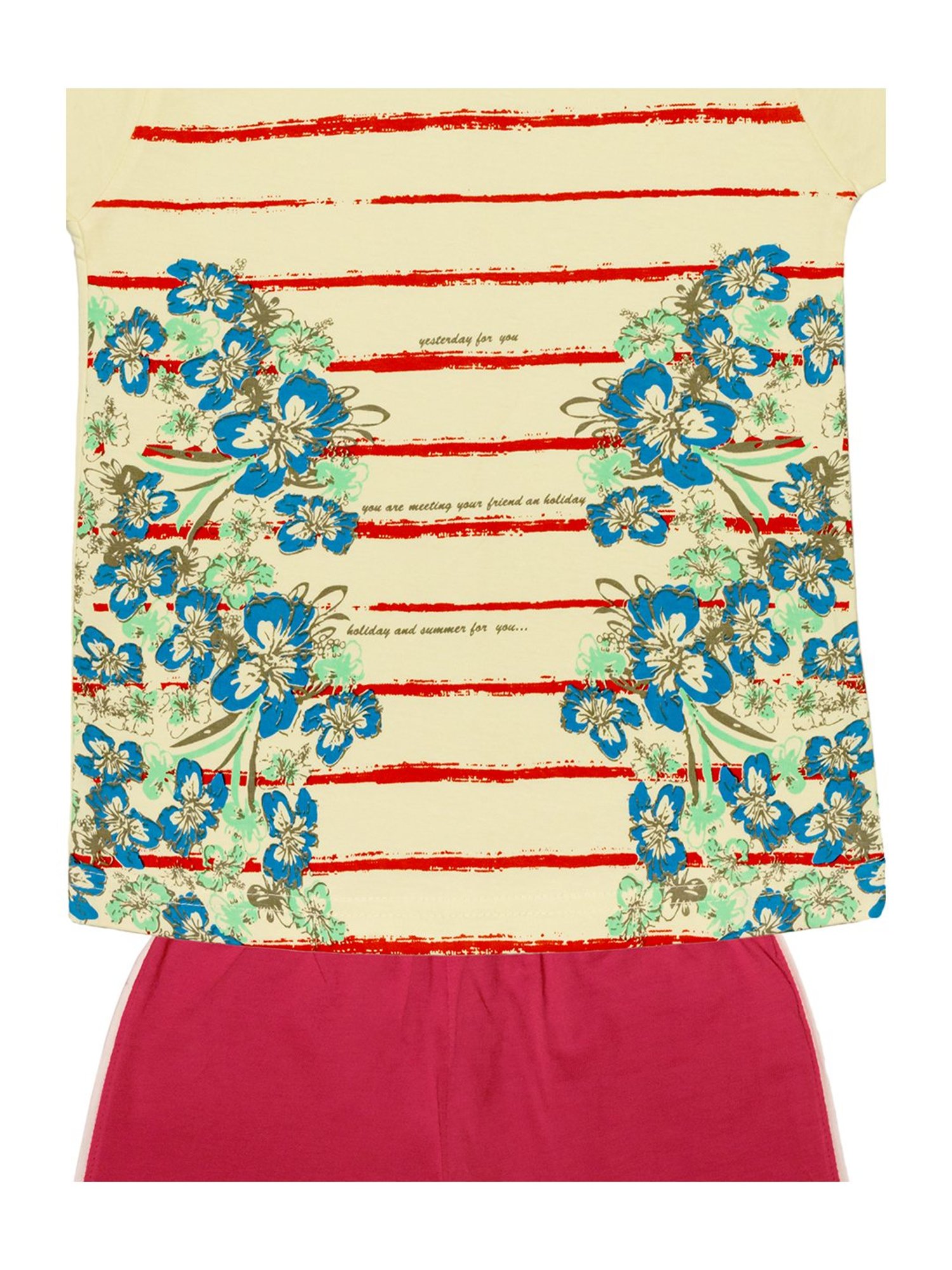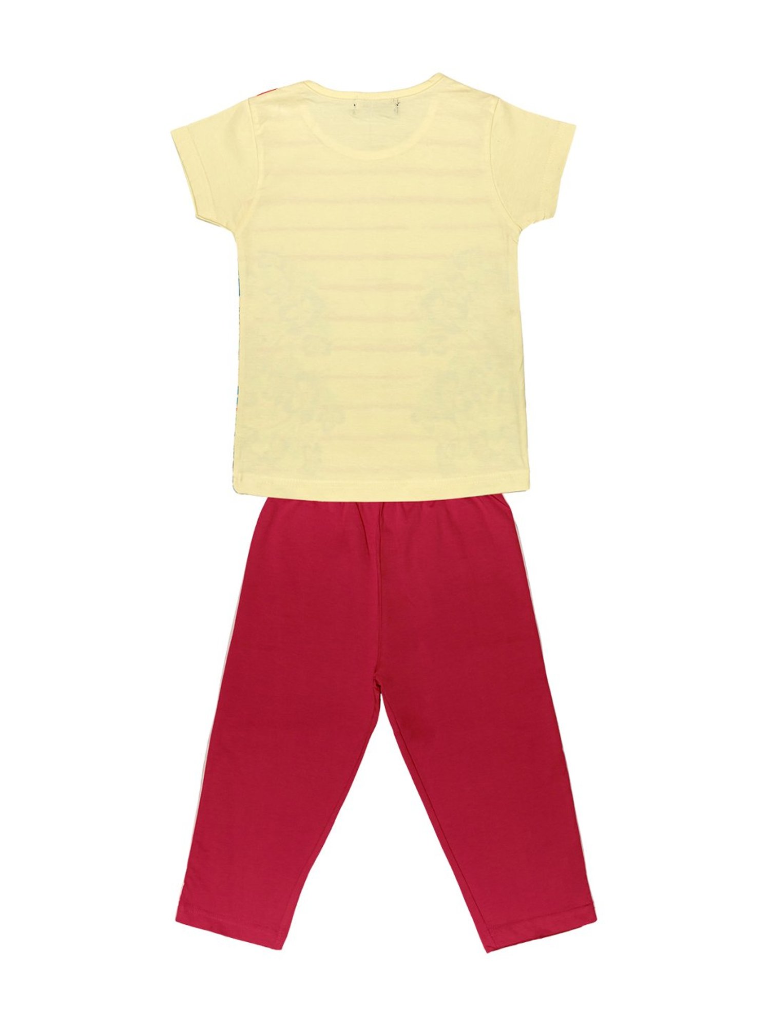 Designed with care, this yellow t-shirt and pants from Todd N Teen Kids will make your little heart the cynosure of all eyes. Crafted using premium quality cotton fabric, it will be very soft to the skin. The round neck adds to its appeal. Flaunting half sleeves, it will surely keep you updated with the latest trend. The graphic print makes it an irresistible choice. To complete the look, your dear can team it with a pair of sunglasses.