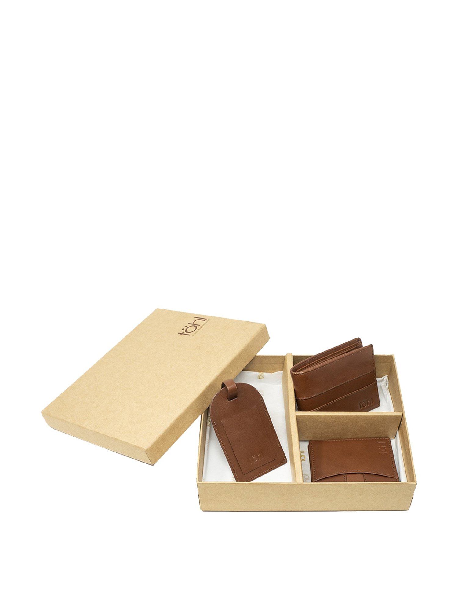 The men's leather gift set from Tohl includes a wallet, card holder and key tag. The key tag is the perfect travel accessory. It's a stylish and utilitarian hangtag for laptop bags, backpacks and luggage. The wallet has an ID card slot and lots of space for your cards and cash. Spacious and functional, it's a great wallet that's perfect for every day and work. The cardholder stores all your important cards safely.