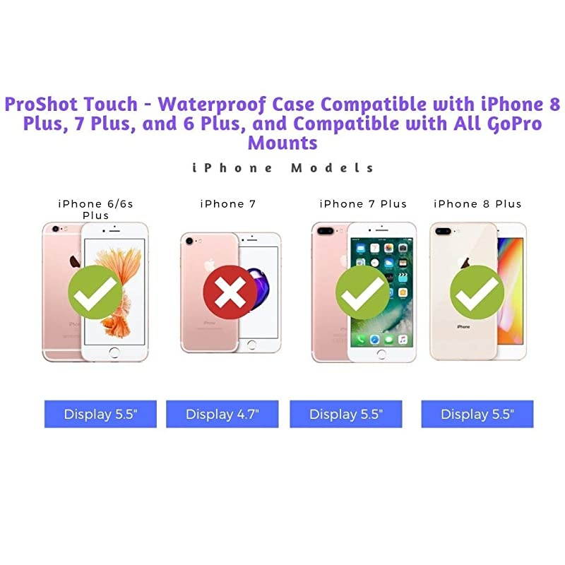 Camera App included: 'ProShotCase' - *MUST USE this camera app for all underwater photography. iPhone touchscreen will not work underwater. * All footage saved directly to your iPhone's camera roll. *****- Case fits iPhone 6 Plus, 7 Plus, and 8 Plus. No access to iPhone's audio jack or charging port when inside this case - this is not recommended as an everyday phone case. *****- Assistive Touch recommended for Users with Screen Protectors. Instructions Provided.
