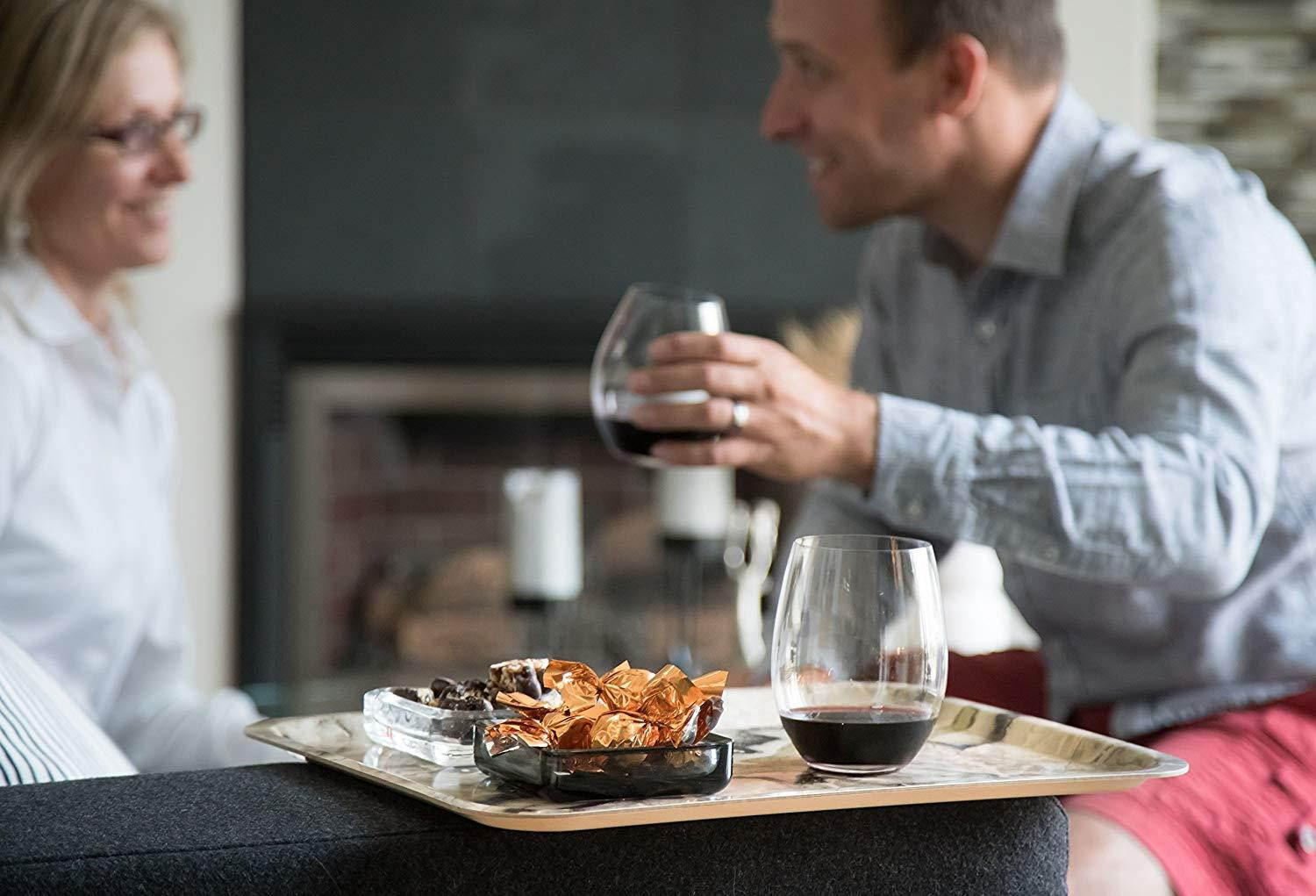 WOODEN BIRCH TRAY: Tray is handcrafted with multiple layers birch veneer. The tray measures approximately 16x12 inches (42x32cm). The backside of the tray shows the natural color of wood. Tray is sealed with a melamine coat - if you spill some red wine on it, just rinse it off with water.