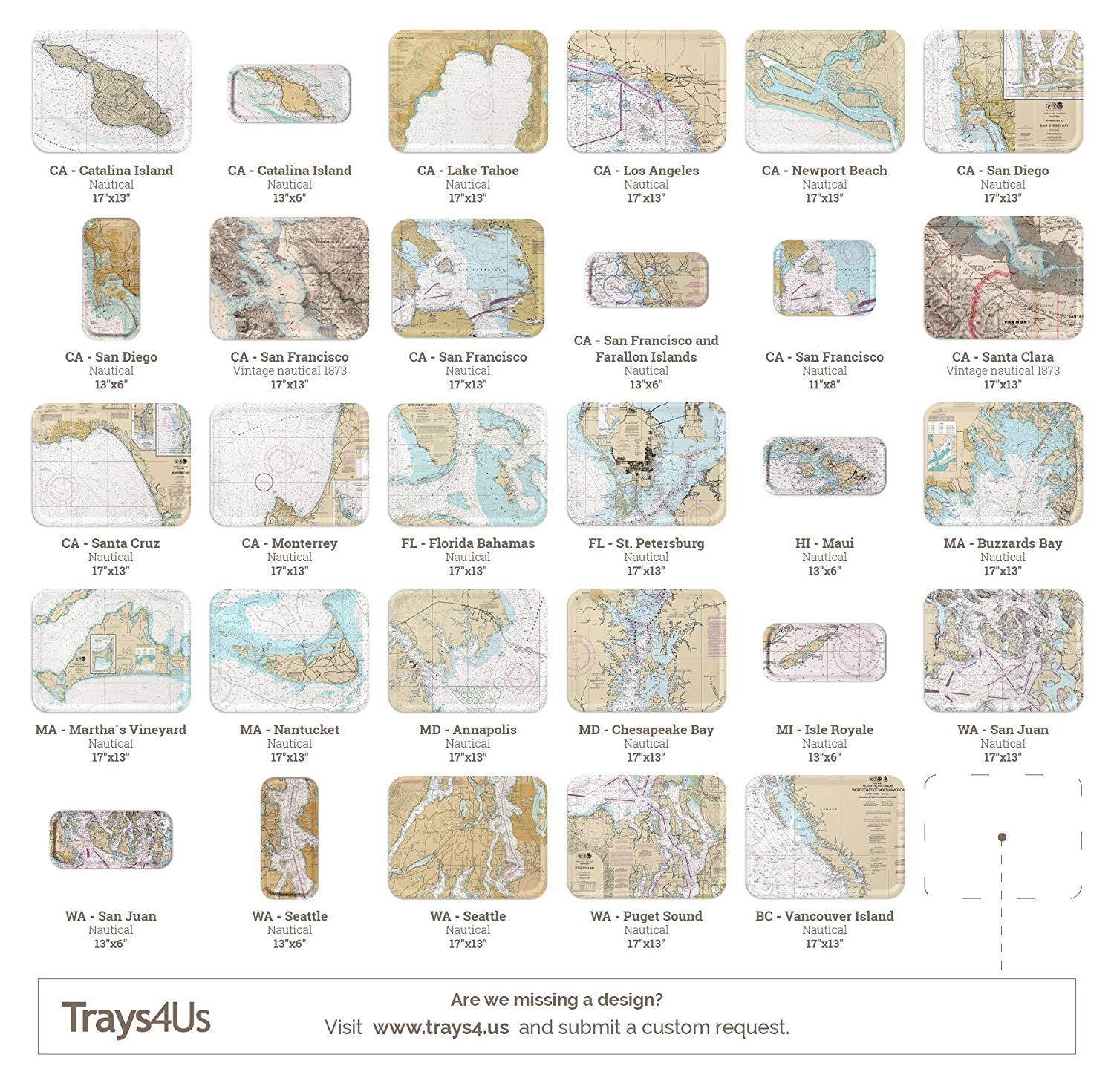 NAUTICAL CHART - The tray is sealed with a portion of the nautical topographic chart of San Francisco in 1853. The tray's beautiful, vintage nautical décor makes it a great gift and souvenir or San Francisco while also being very practical serving tray.
