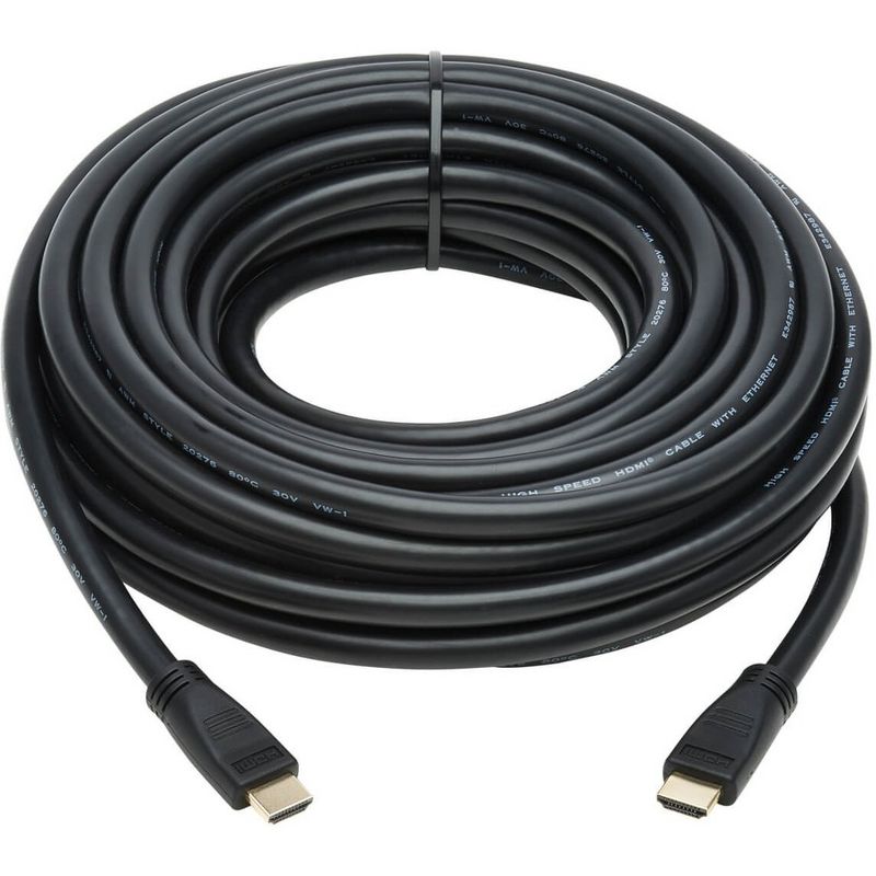 4K HDMI Cable Connects Home Theater or Digital Signage Audio/Video Components This high-speed HDMI cable securely connects HDMI-enabled Chromebooks, MacBooks, tablets, PCs, Blu-ray players, game consoles, Roku/Apple TV boxes or satellite/cable TV receivers to HDTVs, HD monitors, projectors or home theater receivers. It allows you to extend your HDMI signal as far as 50 feet from the source without connecting a signal booster or having to use more expensive active optical cable (AOC) or Cat5/6 cable. It also supports Ethernet, so no separate cable is needed to connect devices online. Enjoy the Clarity of 4K HDMI Video with Multi-Channel Audio This Tripp Lite 4K HDMI cable provides a pure digital connection that supports Ultra HD video resolutions up to 4096 x 2160 (4K x 2K) at 30 Hz for crystal-clear picture and sound. It's compatible with HDCP 1.4 and HDMI 1.4 standards and is backward compatible with previous HDMI generations, allowing you to use it to connect lower-resolution