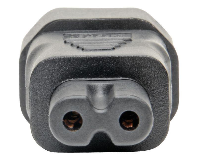 Features IEC C14 to IEC C7 Adapter Connects Notebook Computers to an AC Outlet This UL-listed C14 to C7 power cord adapter converts a C8 plug into a C14 connector and is ideal for a device's built-in power cord that doesn't match an available outlet. You can use this adapter to connect a notebook computer, laptop or other device with a two-slot C8 power cord to a surge protector or UPS system with a C13 outlet.