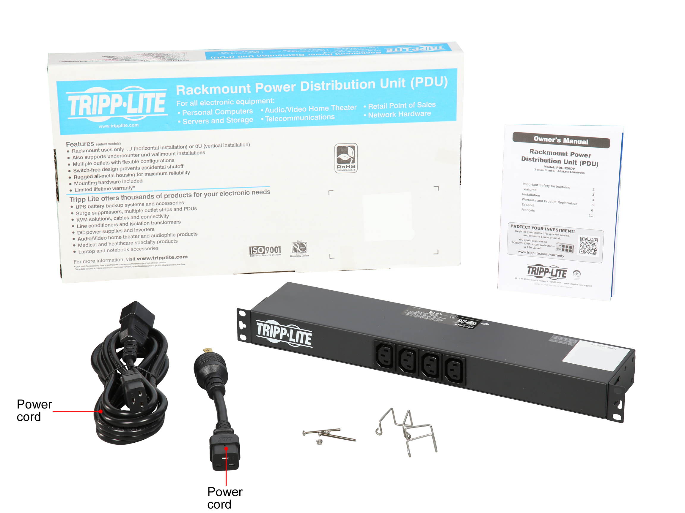 Tripp Lite's PDUH20DV Basic PDU / power distribution unit offers 20A 100-250V power distribution in rack enclosures, network closets and datacenter applications. Detachable mounting flanges are configurable for 1U horizontal and 0U vertical rackmount installation with additional support for secure wallmount and under-counter placement. Detachable 12 ft. / 3.7m line cord with C20 plug and L6-20P adapter. Includes 4 front-facing and 8 rear-facing C13 outlets (12 total), plus 2 rear-facing C19 outlets. Ideal for power distribution in rack enclosures, network closets and a variety of other application types. Includes back panel grounding lug, reversible housing and rugged all-metal case design. Key Features 100-250V basic rackmount PDU supports 20A maximum output power (agency de-rated to 16A continuous) Supports 1U horizontal 19 inch rackmount installation in 2 or 4 post equipment racks Detachable mounting flanges enable secure 0U vertical rackmount installation in most racks, plus support for wallmount and under-counter mounting Optional PDUSIDEBRKT enables simple button-mount 0U vertical installation in Tripp Lite SmartRack enclosures Reversible housing enables front or rear input cable entry Detachable 12 ft. / 3.7m line cord with C20 plug and L6-20P adapter Includes 4 front-facing and 8 rear-facing C13 outlets, plus 2 rear-facing C19 outlets Ideal for power distribution in rack enclosures, network closets and a variety of other applications Back panel grounding lug offers convenient earthing point Typical Applications Ideal for datacenters, network closets, equipment racks and a wide variety of other application types Package Includes PDUH20DV PDU rackmount PDU Owner's manual