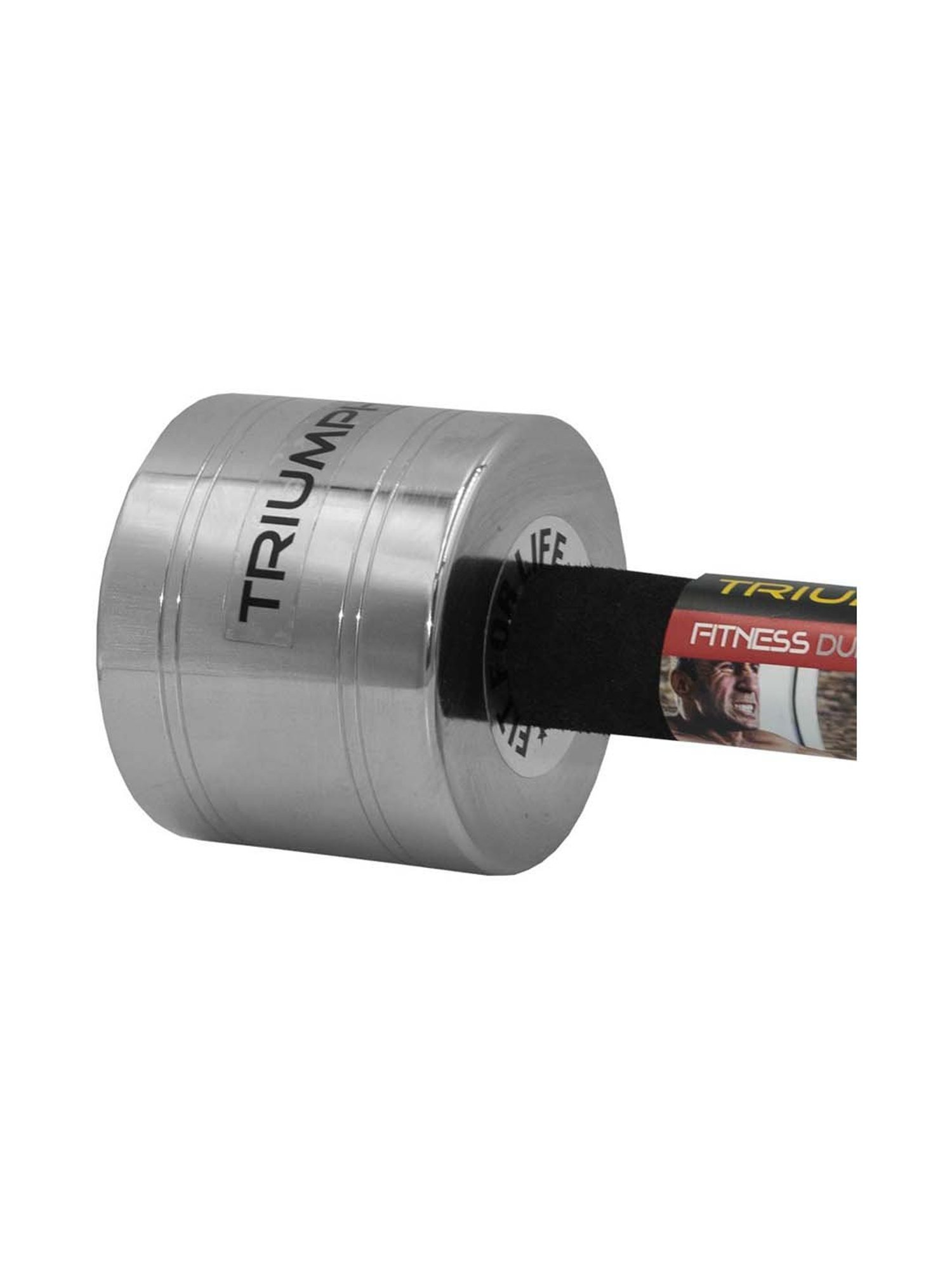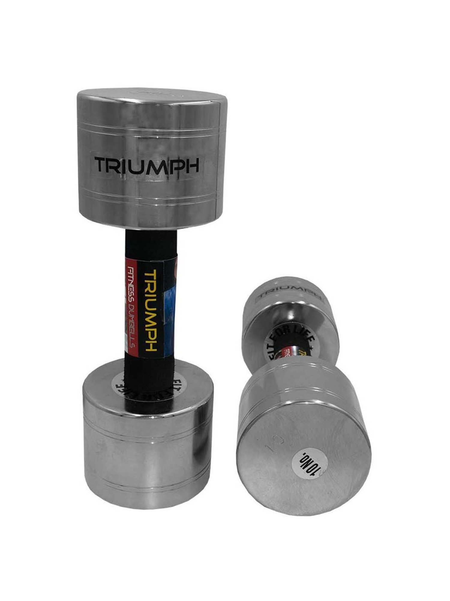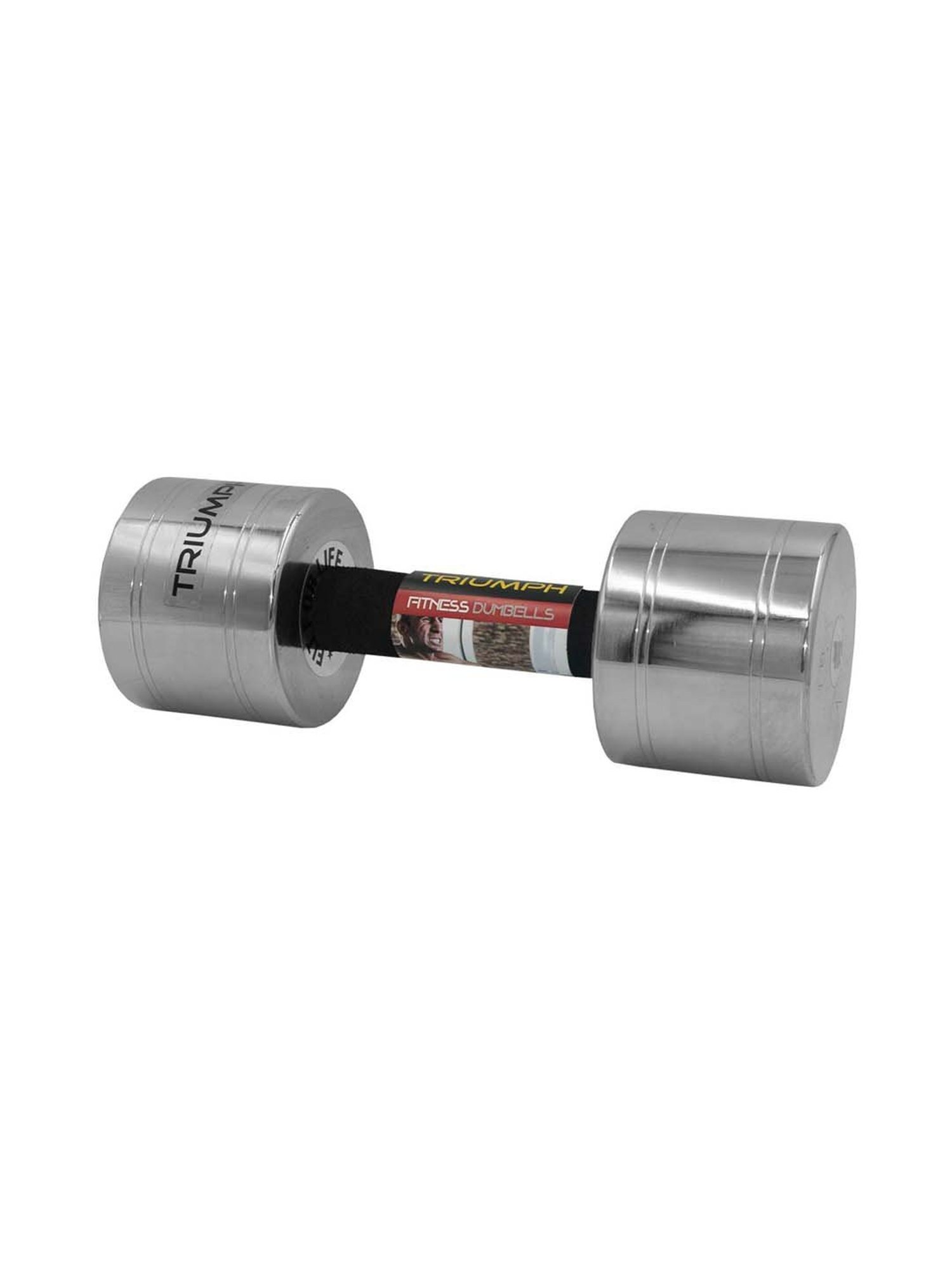 This pair of silver chrome plated dumbbells from Triumph has high resale value as compared to rubber-coated ones as the material is steel. The handles are designed to fit comfortably in the palm of hands. It is perfect for workouts and is highly durable and long-lasting. It is ideal for muscle builders. It has a weight, height, length and width of 10 kilograms, 15 cm, 25 cm and 10 cm respectively.