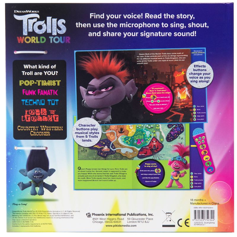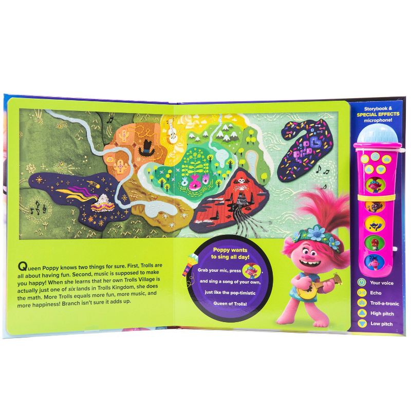 Read and sing like a Troll with this book and voice-changing microphone! Microphone plays 5 musical riffs and includes 5 voice effects that change your voice as you talk or sing!