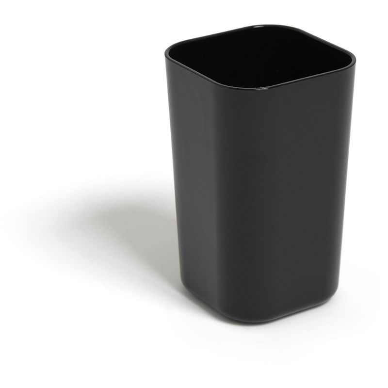 Plastic Pencil Cup, Black TR55321. Use this pencil cup to keep writing highlighters, pencils, pens at your fingertips. Manufactured from a black glossy finish plastic. Use stand alone or mix and match with other pieces. Create a custom, tiered desk organizer when stacked with other TRU RED desk accessories. Measures 2. 61"L x 2. 61"W x 4. 3"H. Sold as 1 Each.