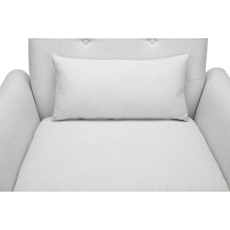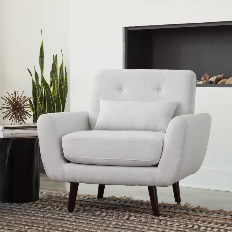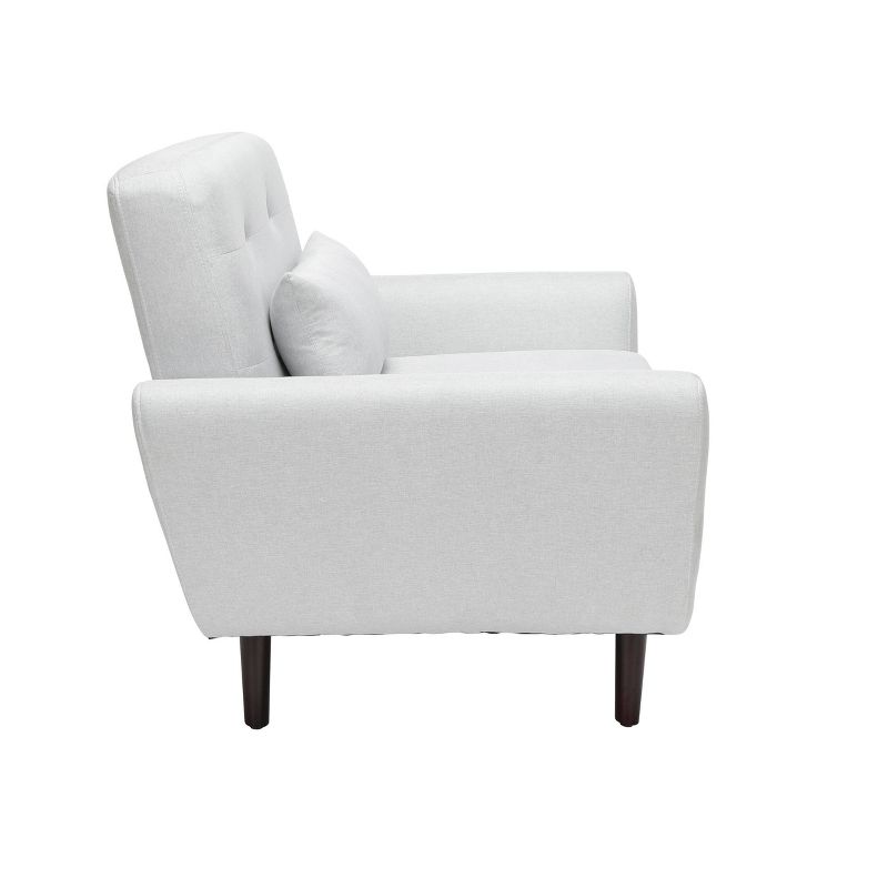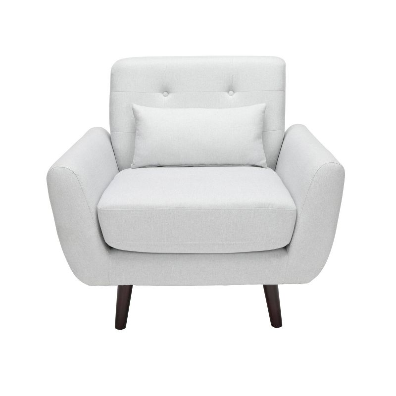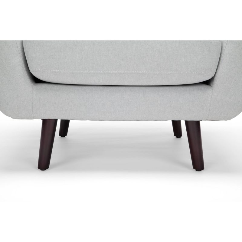 The 161 Collection blends mid century modern and industrial modern styles with current design trends to create timeless pieces, like these lounge offerings, that seamlessly compliment any decor. The OFM 161 Collection Mid Century Modern Tufted Fabric Accent Chair with Arms and Lumbar Support Pillow brings a touch of elegance to any setting. The upholstered chair features a tufted back, a 6.5" thick base cushion, and a lumbar pillow all for comfort and support. The low profile back and arms are stylishly modern and pair perfectly with the Walnut legs featuring the classic mid century modern flare design. Installation is quick and easy, just affix the lounge chair's legs to the underside. Adjustable feet glides help prevent scratches and adjust in height to help account for uneven floor surfaces. This versatile occasional chair can be used in multiple applications including bedrooms, living rooms, waiting rooms, lobbies, and reception areas.