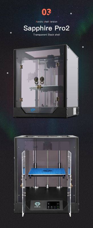 Sapphire pro belongs to the corexy structure, which has the characteristics of fast running speed and stable structure, and the maximum running speed can reach 1000mm/s.