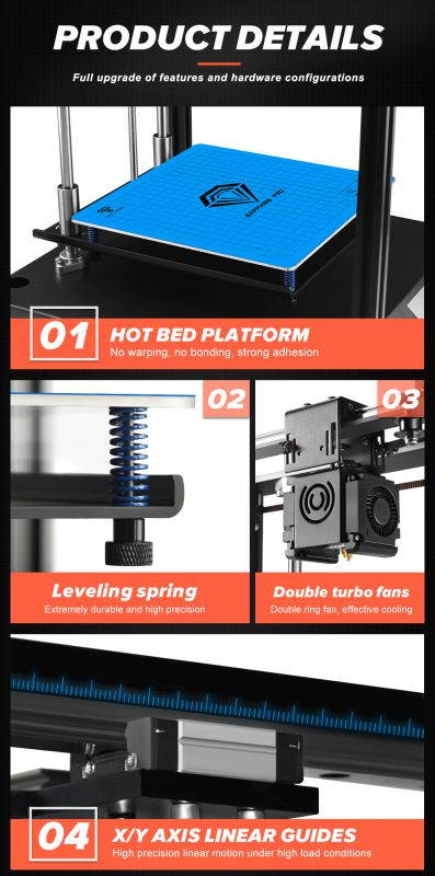 235 * 235 high-power heating bed, the overall printing area of ??the machine can reach length: 220 * width 220 * height 220.