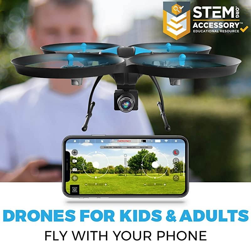 RANGE AND FLIGHT TIME: This selfie drone flies in a 150-meter range for up to 25 minutes with 2 rechargeable drone batteries; includes USB charging cable, 4 extra drone propellers, and comes in original U49W Blue Heron packaging*****QUALITY
