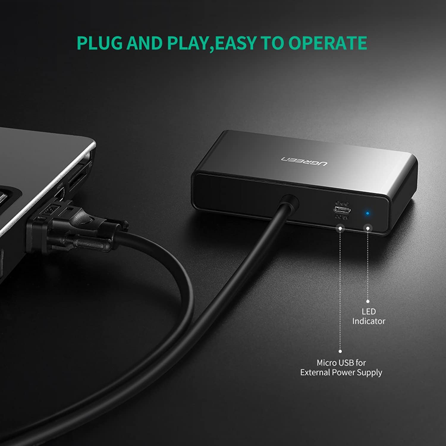 External Power Needed for Special Devices Equipped with Micro USB port that designed for some special VGA devices that may require external power. Some devices may not require external power source. (Micro USB cable not included).