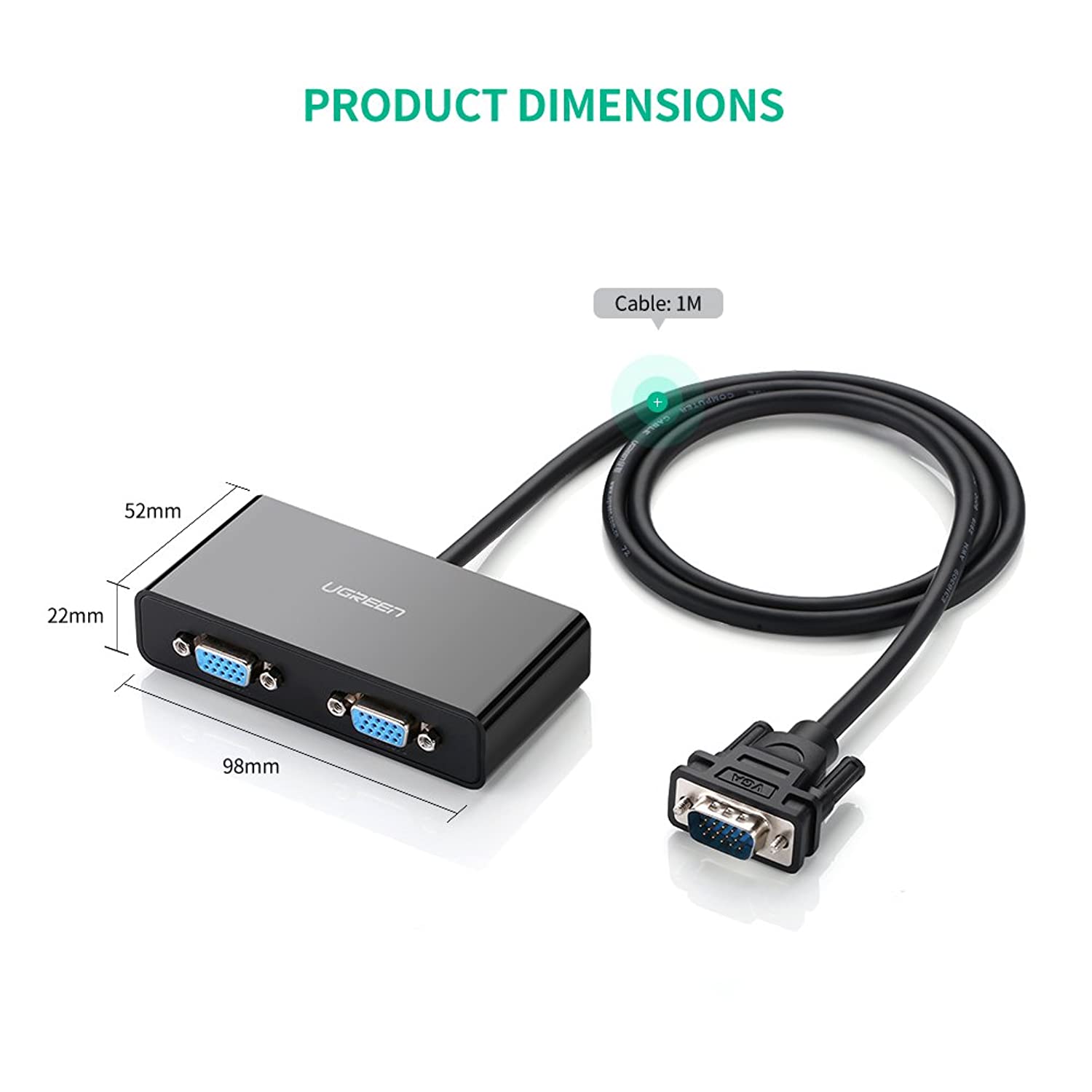 UGREEN VGA Splitter 1 in 2 Out Screen Duplication [Mirror Mode ONLY] Y Splitter Computer Monitor VGA SVGA Port with 1M Cable Support 1080P 60Hz for Laptop PC to Monitor Projector, No Extend Mode