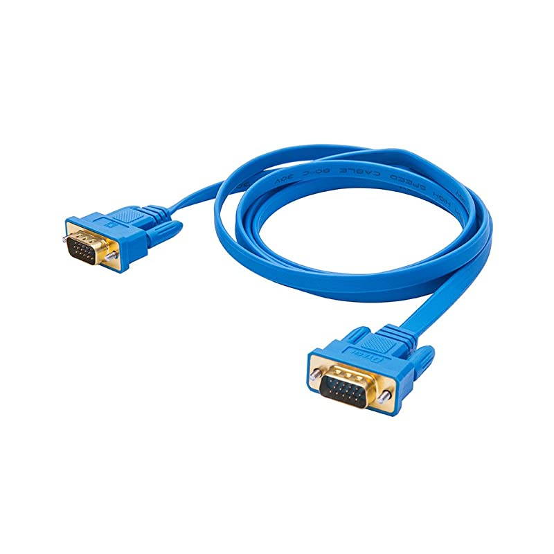 Size: 6ft Ultra Slim Flat Design and Lightweight Used in place of bulky, stiff round cables for easy cable management, to add more bulk to work space and make your workspace and room look more neatness. It would be ideal for running the cord under the carpet. It's also good for running it along the baseboard or wall, and then painting it so it's barely noticeable that it's even there. Nice Looks! For a Sky-Blue color make it with a difference. You need a monitor cable that unlike others. Most of VGA cables on the market are black, even just black! This VGA Cable with nice looks color Sky-Blue, somewhat different. (And, we have this Slim Flat Type VGA cables with Purple and Black to sell; the different colors cable will help you to separate input and output from each other. ) High-Quality Engineering The Flat VGA cable provides superior performance compared favorably with round cables, because it's built with quality gold-plated connectors and 100% bare copper conductors. And EMI/ RFI are greatly reduced with foil and copper braid shielding, No ghosting and no degradation.