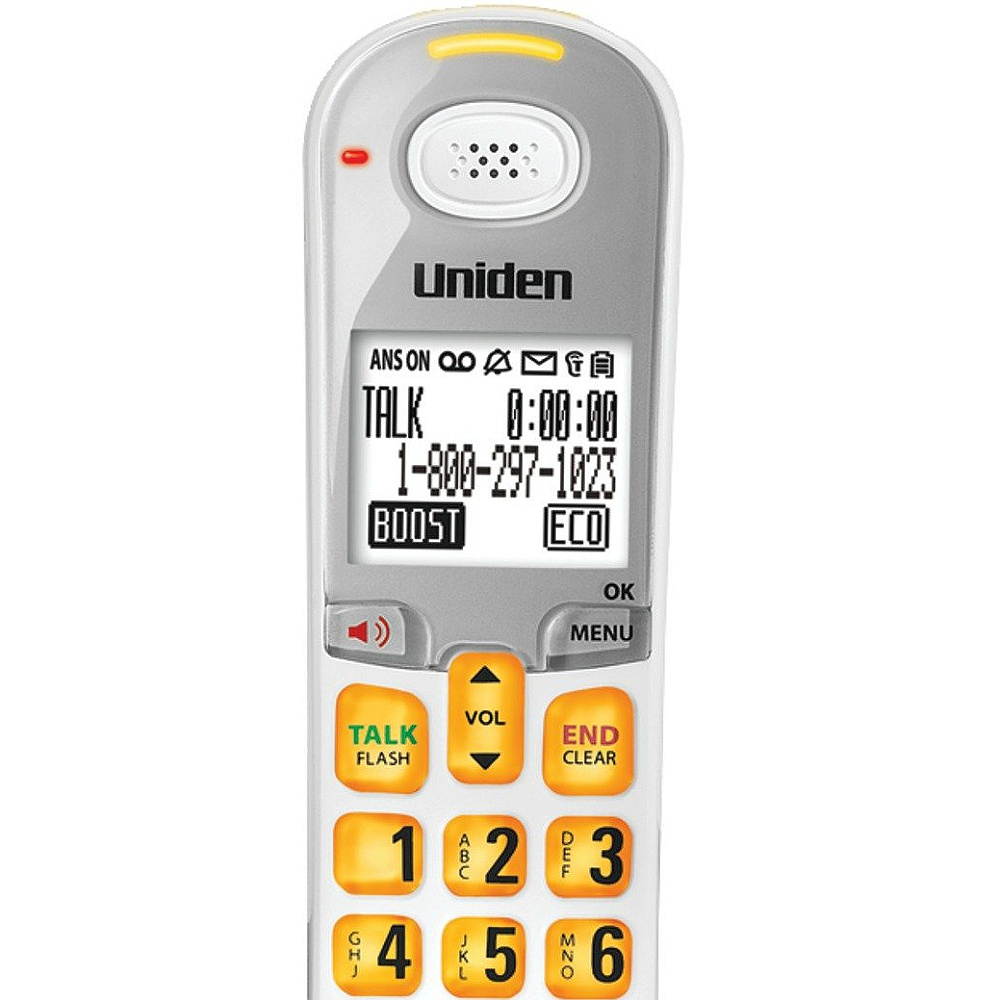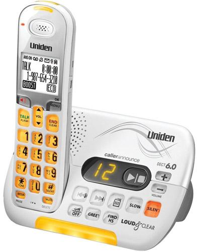 Uniden D3097. DECT 6.0 Amplified Phone.. The Uniden D3097 cordless phone is equipped with DECT 6.0 technology, which delivers enhanced voice clarity and security features. Interference from wireless networks is no longer an issue with this system, so you can enjoy hassle free communication all the time. The 14 minute digital answering system features time day stamp, message alert and call screening... With sophisticated big button design, the D3097 also features large fonts, visual ringers, audio boost and caller ID announce. The base is expandable up to 12 extra handsets.