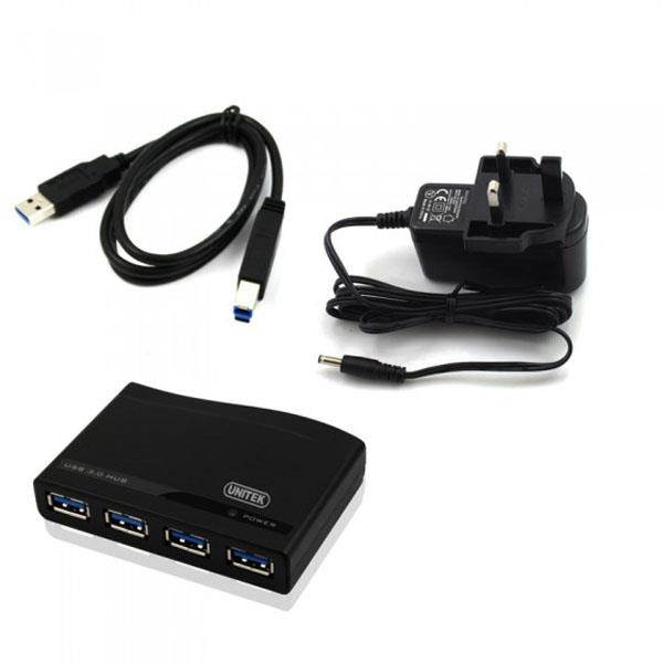 Unitek 4-Port USB 3.0 HUB 5Gbps with Power Adapter & USB 3.0
