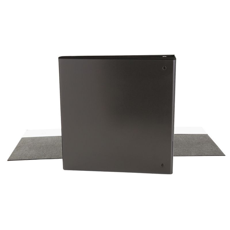 Matte-finish, transparent plastic overlays on front cover, back cover and spine present limitless label customization options. Slant rings allow smooth page turning and hold more documents than the same-size round rings. Open and close triggers provide fast, nearly effortless access to single sheets. Binder features back-mounted rings for added convenience. Two inside pockets provide extra storage for loose documents. Poly material is non-stick so inserts, pockets and cover won't lift print. This product was made from wood that came from a certified managed forest. Capacity Range [Max]: 1 1/2"; Sheet Capacity: 375; Color(s): Black; Binder Sheet Size: 11 x 8 1/2.