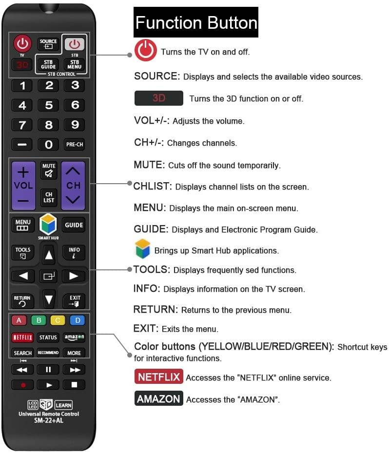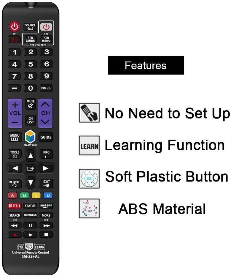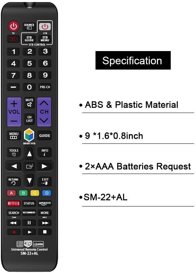 Nettech Universal Replacement Remote Control SM-22+AL for Almost ALL Samsung TV/ 3D/ LCD/ LED/ HDTV/Smart TV - 1 Year Warranty. It is NOT an original Samsung remote, but it works with almost ALL Samsung brand TV. If not, it is very easy to set up and also has learning function.Compatible with other models:
