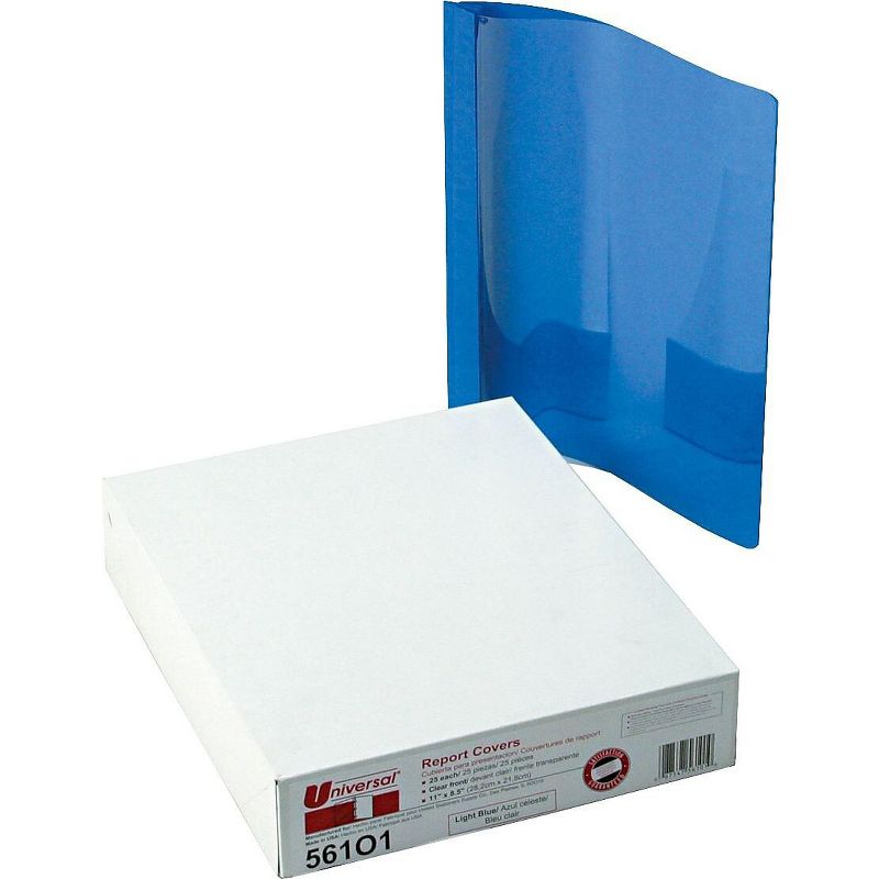 Showcases title sheet. Paper back cover and spine add color. Front Cover Color(s): Clear; Back Cover Color(s): Light Blue; Sheet Size: 8 1/2 x 11; Capacity Range [Max]: 1/2". Paper back cover and spine add color Sold as 25/Box.