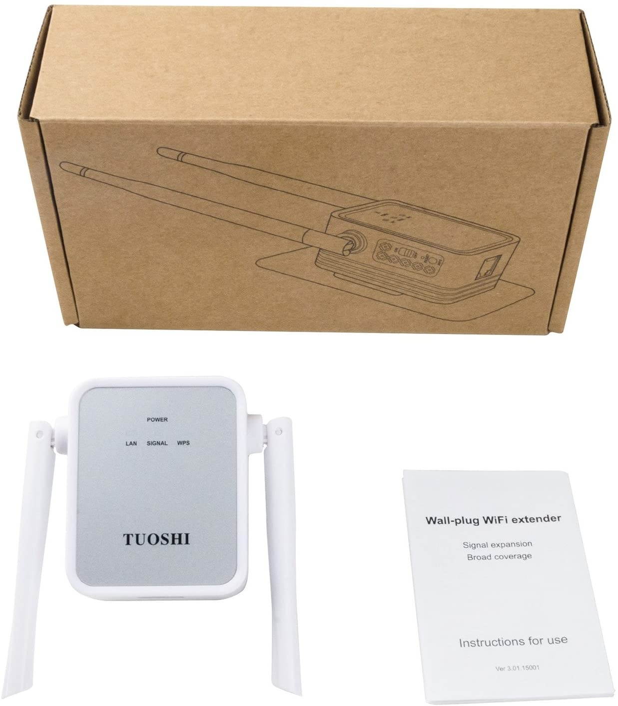 ?? Strong WiFi Signal: Go through all of your walls in your home or office. No matter how big your house TUOSHI TS720W can always help you with 360-degree strong WiFi coverage. ?? Intelligent Roaming, automatically connect the strongest signal source. Wall-Through WiFi Extender TS720W is Built-in Dual MTK Chipset, which ensure strong signal from the CPU. It come with dual external 5dBi Antenna, wifi signal can be going through very well and extend wifi coverage to longer distance.