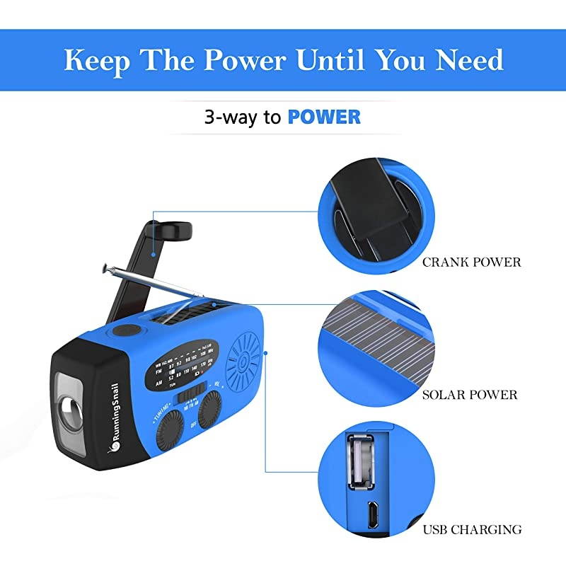Rechargeable Ways: Micro USB charging, Solar charging, Manual hand crank to wind up the internal battery; *****What