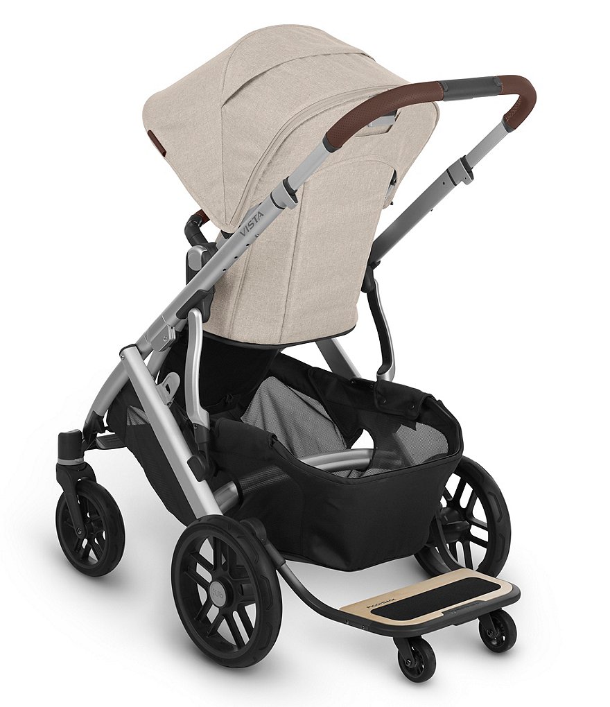 The PiggyBack ride along board easily attaches to the back of your VISTA stroller to allow your toddler to join in the stroll, even when they are too tired to walk on their own.