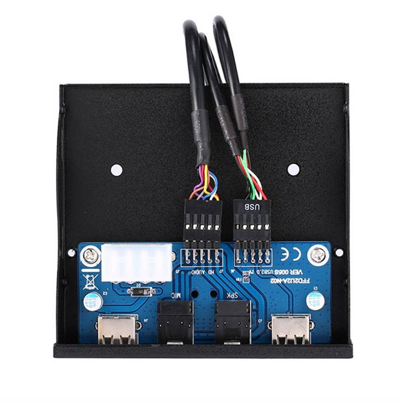 3.5 -inch Front Bay to 2-Port USB 2.0 Panel Hub and 1 HD Audio Port/1 Microphone Port turns any available 3.5 -inch computer case front bay into a 2 Port USB 2.0 hub. Using only a single USB connection, this front panel hub adds two easily accessible USB ports to the front of your computer case through a 3.5 -inch bay, or through a 5.25 -inch bay using the optional Front Bay Bracket Adapter accessory. Each of the added ports is compliant with the USB 2.0 standard which supports up to 480Mbps of bandwidth and up to 500mA of power.
