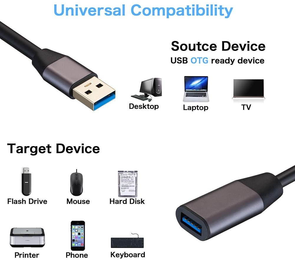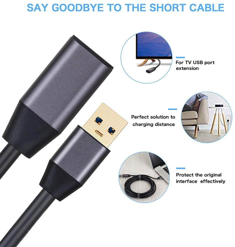 Universal Compatibility: USB A male to USB A female 3.0 Extension Cable can using this extension cable to extends your usb connection to your computer, as well as a variety of USB peripherals such as Hubs, Printers, Card Readers, Bluetooth Adapters, USB Flash Drives, Scanners, Hard Drives, Mouse, Keyboard without any hysteresis or loss of data.