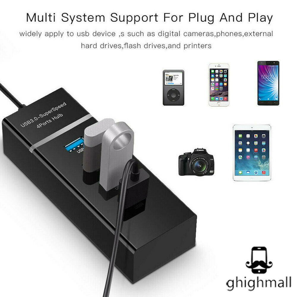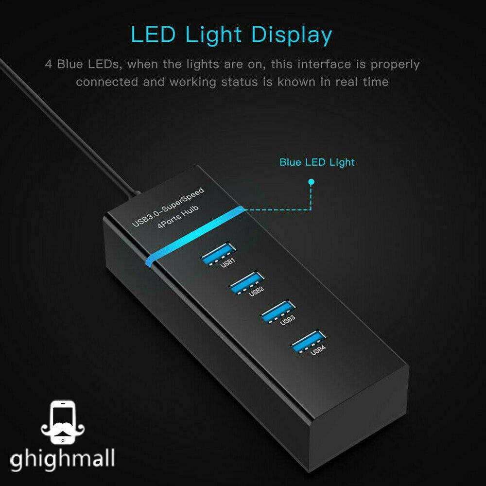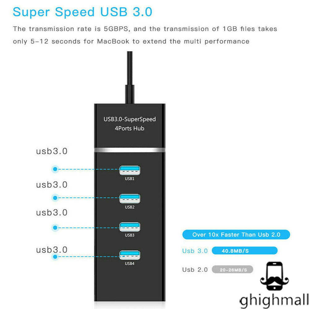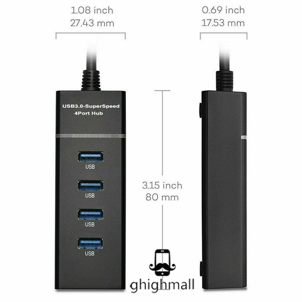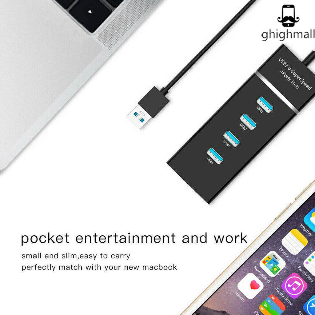 4 USB 3.0 ports to your laptop or Ultrabook using this slim, portable hub with an extended-length cableÂ