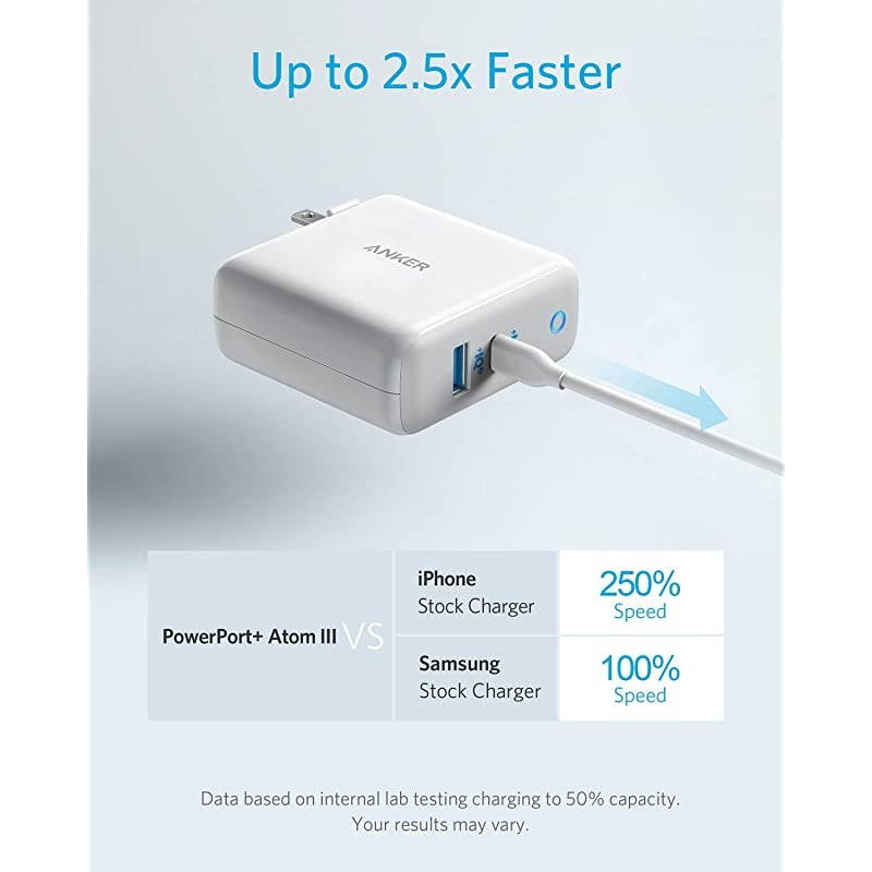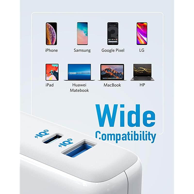 **********Universal High Speed - From iPhone to Samsung to USB-C laptops and more, s signature PowerIQ 3.0 technology provides high-speed charging to virtually any mobile device. *****One for All - Compatible with virtually any device that can be charged via USB; with a USB-C PowerIQ 3.0 port and a USB-A port equipped with PowerIQ 2.0. *****Compact Size - 15% smaller than an out-of-the-box MacBook charger, with all of the powerand double the ports. *****Powered by GaN - Swapping out silicon for gallium nitride (GaN) has allowed us to take our world-famous charging technology and shrink it way down.