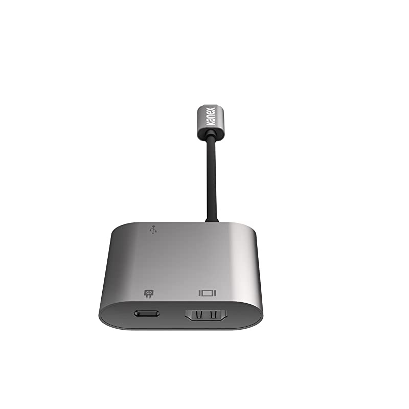 Add an HDMI port and USB port to your MacBook while simultaneously charging with the multimedia adapter. Connect an HDMI cable to mirror or extend your desktop onto an external TV or monitor. Connect existing peripherals such as printers, hard drives, your mouse or flash drive - even charge and sync your iPhone. With data transfer speeds of up to 5 Gbps and a compact portable design, this versatile adapter will become an essential tool to your everyday workstation.