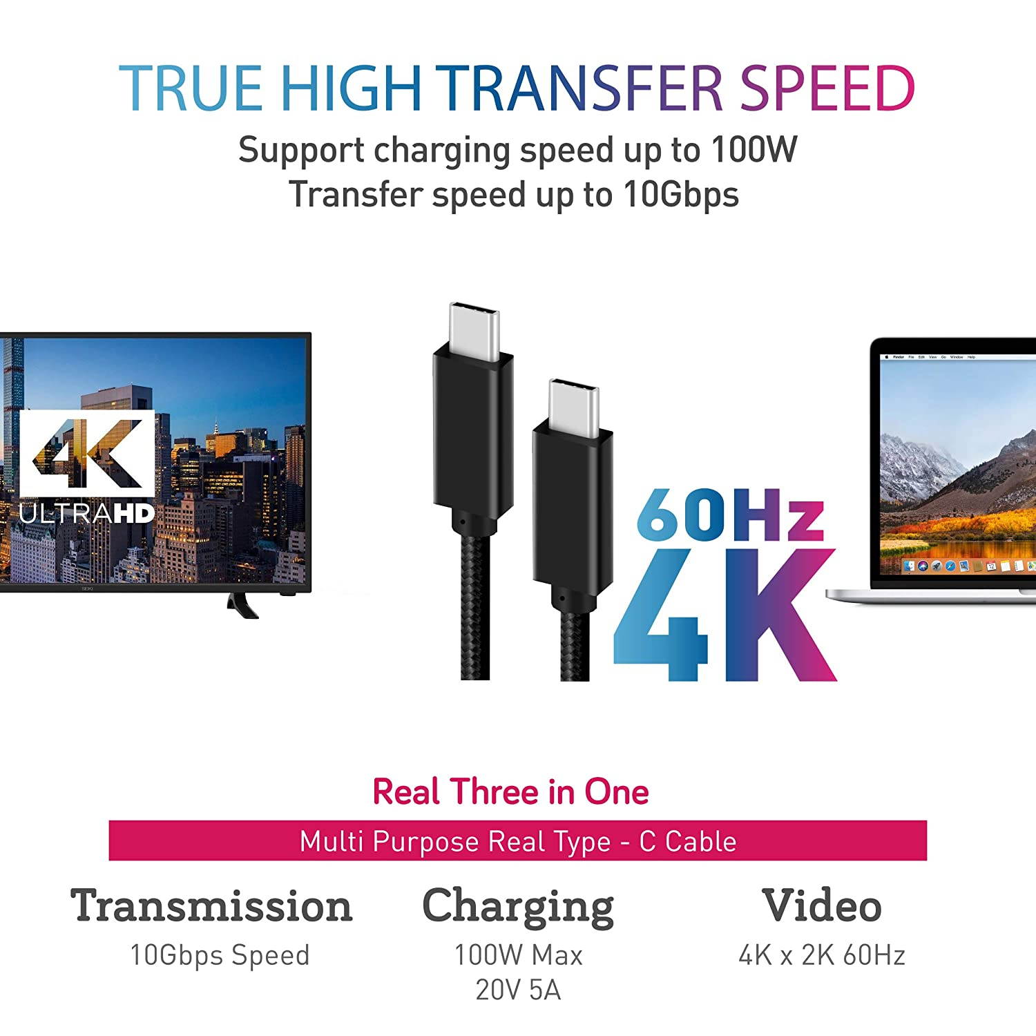 - Max power support: PD 100W, 5A@20V
