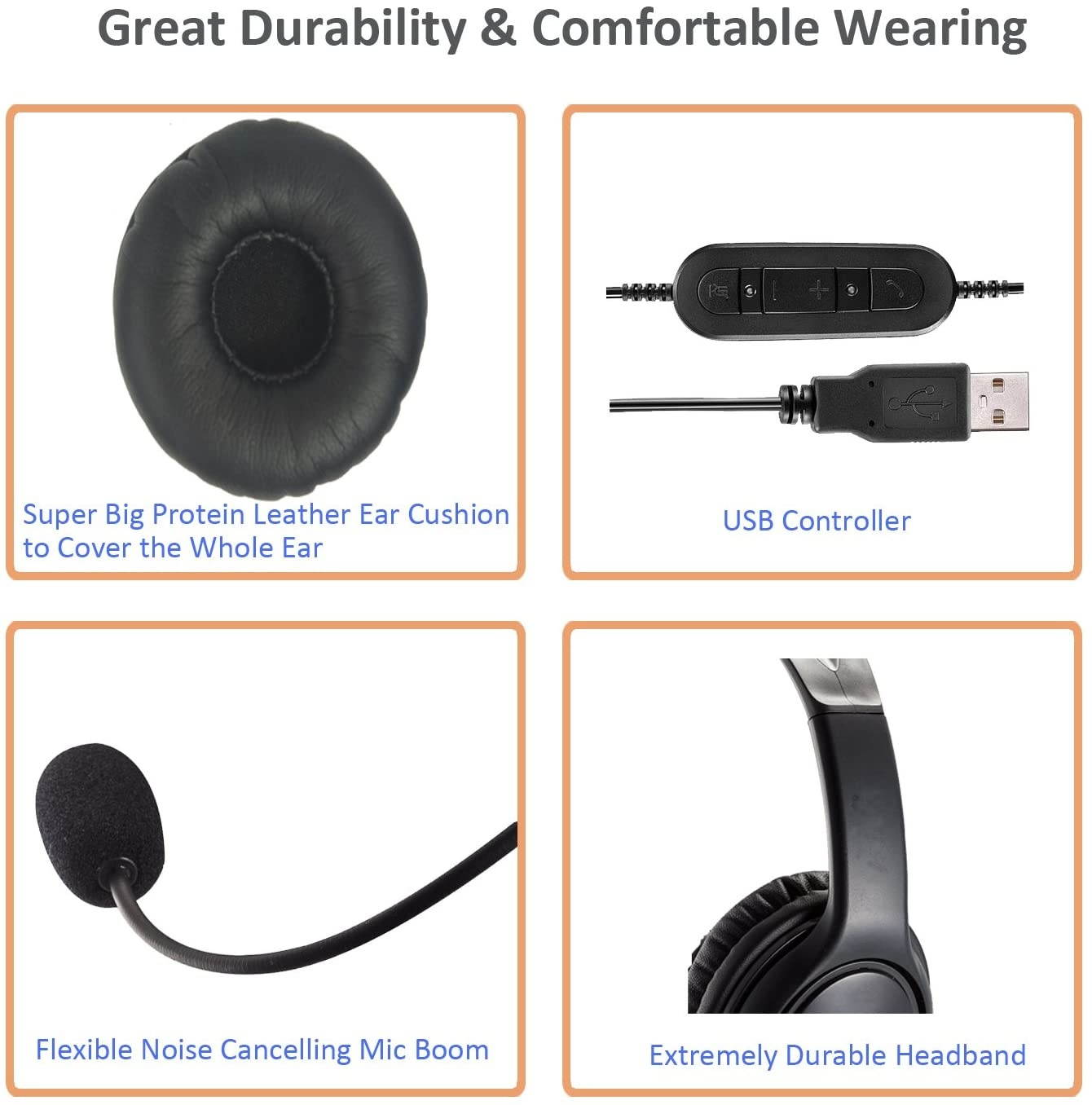 Buy USB Headset with Microphone Dual Ear Computer Headphone with Speech Recognition Volume Control for Skype Chat Call Center Softphones Online Courses Gaming in United States - Cartnear.com