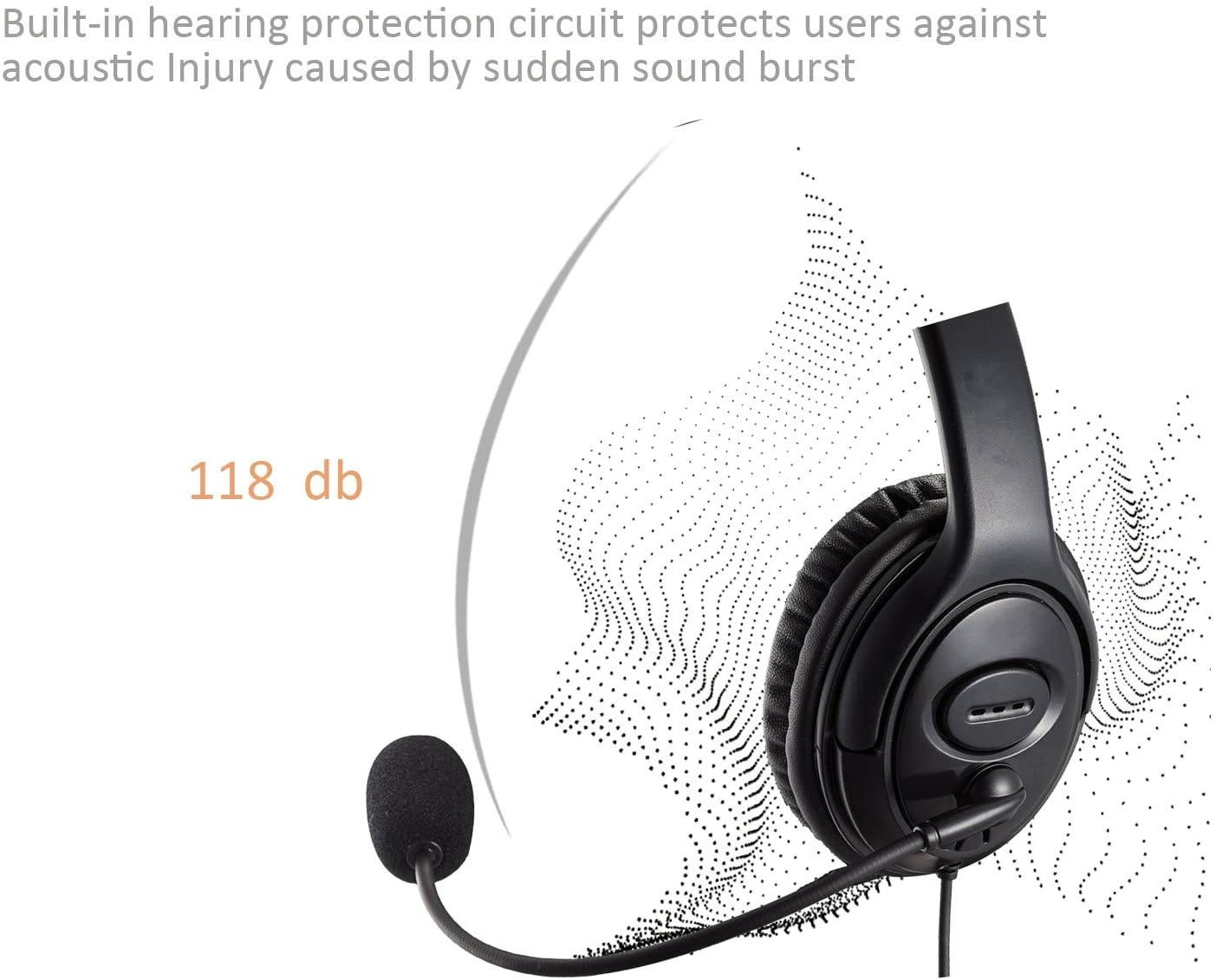 USB Headset with Microphone Dual Ear Computer Headphone with Speech Recognition Volume Control for Skype Chat Call Center Softphones Online Courses Gaming