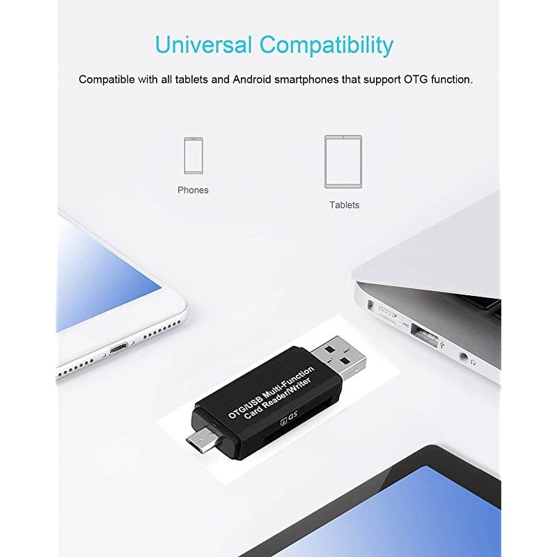 Interface: USB and USB 2.0 connectors. 1x SD/MMC slot, 1x SD/TF slot 2. Support SD, SDHC, SDXC up to 64GB. 3. Support memory card with FAT 32 file system. Not compatible with NTFS & exFAT formats. 4. Compatible with USB andriod mobile decives with OTG function.