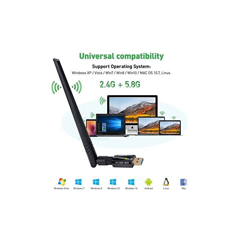 COMPATIBILITY: Designed in such a meticulous way so as to satisfy even your most demanding needs. It supports Windows XP/Vista/7/8/ 8.1 /10/Mac OS X 10.4 - 10.14. 1 Linux( Kernel 2.6 x- 4.7 x). Just plug the 1200Mbps wifi adapter and off you go *****DUAL