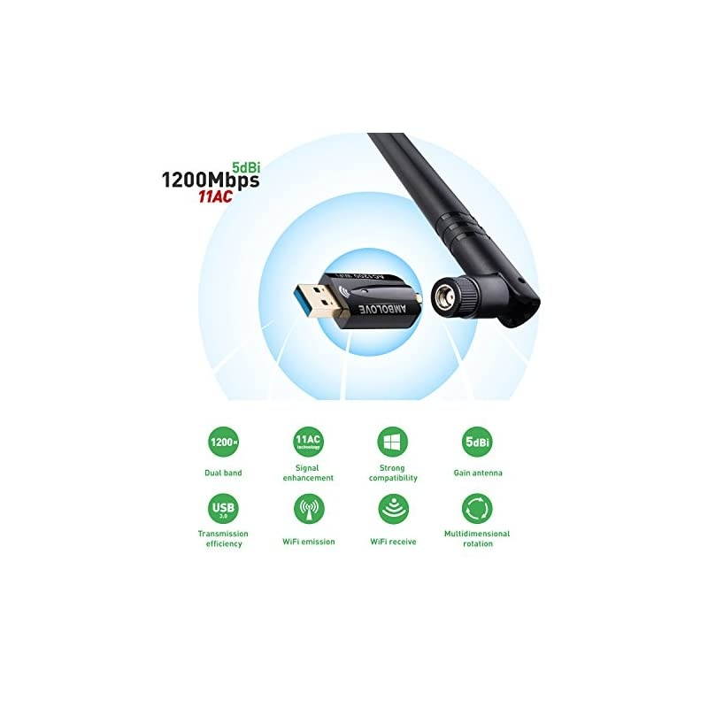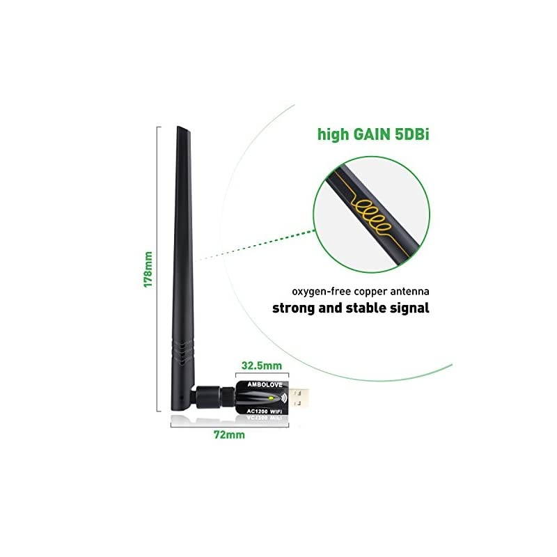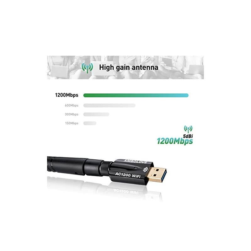 *****1200MBPS ULTRA-SPEED: The usb wifi adapter is up to 1200Mbps Wi-Fi speed on 5GHz (867Mbps) or 2.4GH z (300Mbps) bands, which provides you with super fast experience for HD video streaming and gaming *****GREAT
