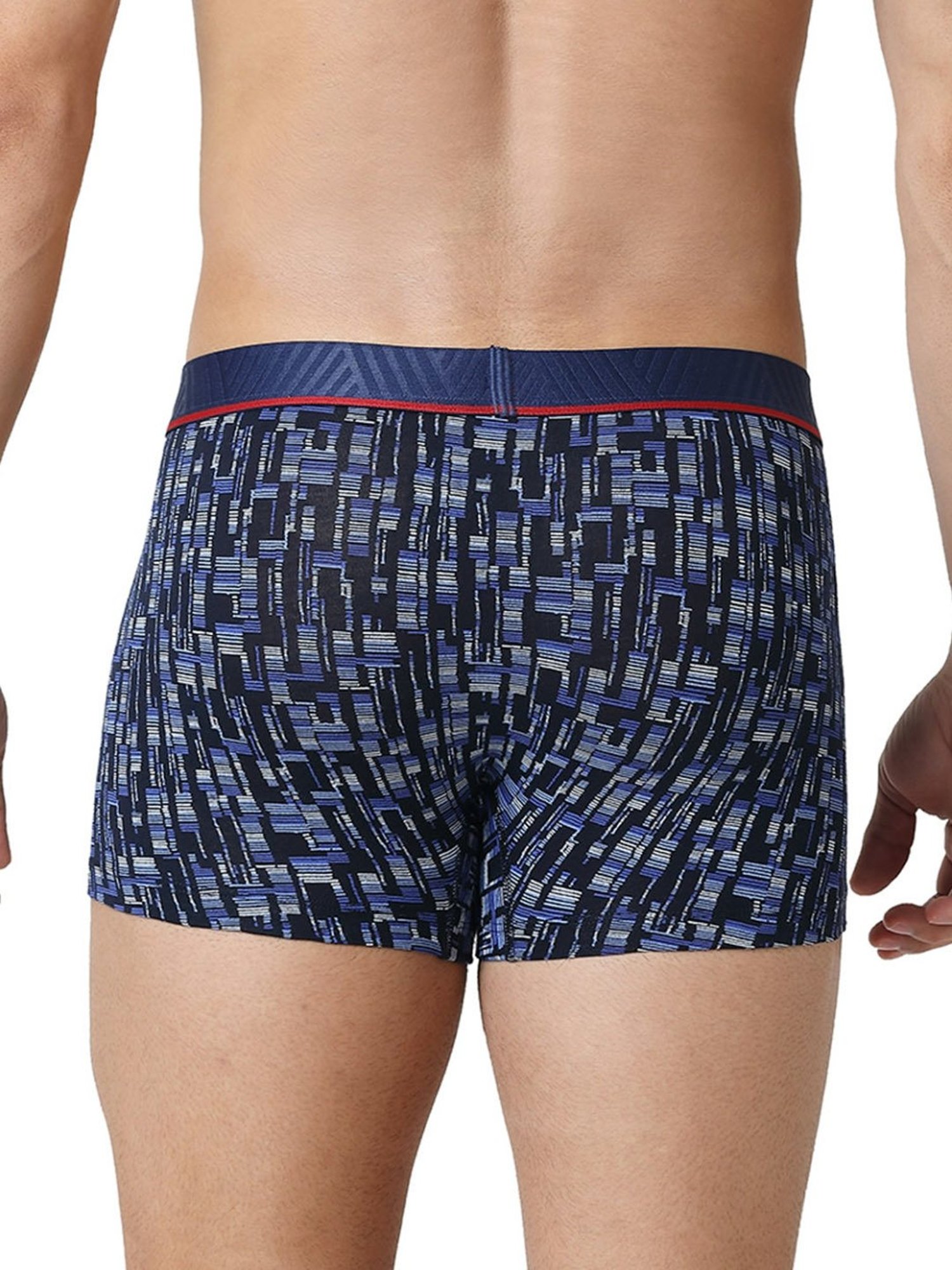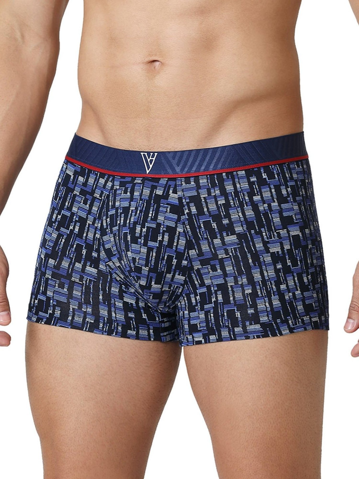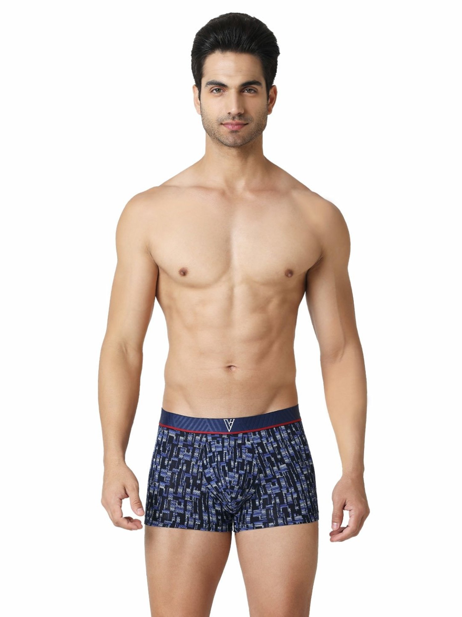 Feel comfortable all day long in these 4-Way Stretch trunks from Van Heusen. Crafted from cotton with stretch, these trunks feature Flexi-Stretch technology that moves with you to give your body a well-defined silhouette. This feature helps you stretch in all directions and provide a superior fit. This signature-style pair features smooth leg finishing, a unique rubber logo waistband, and a contoured pouch for support. Label Free Comfort.
