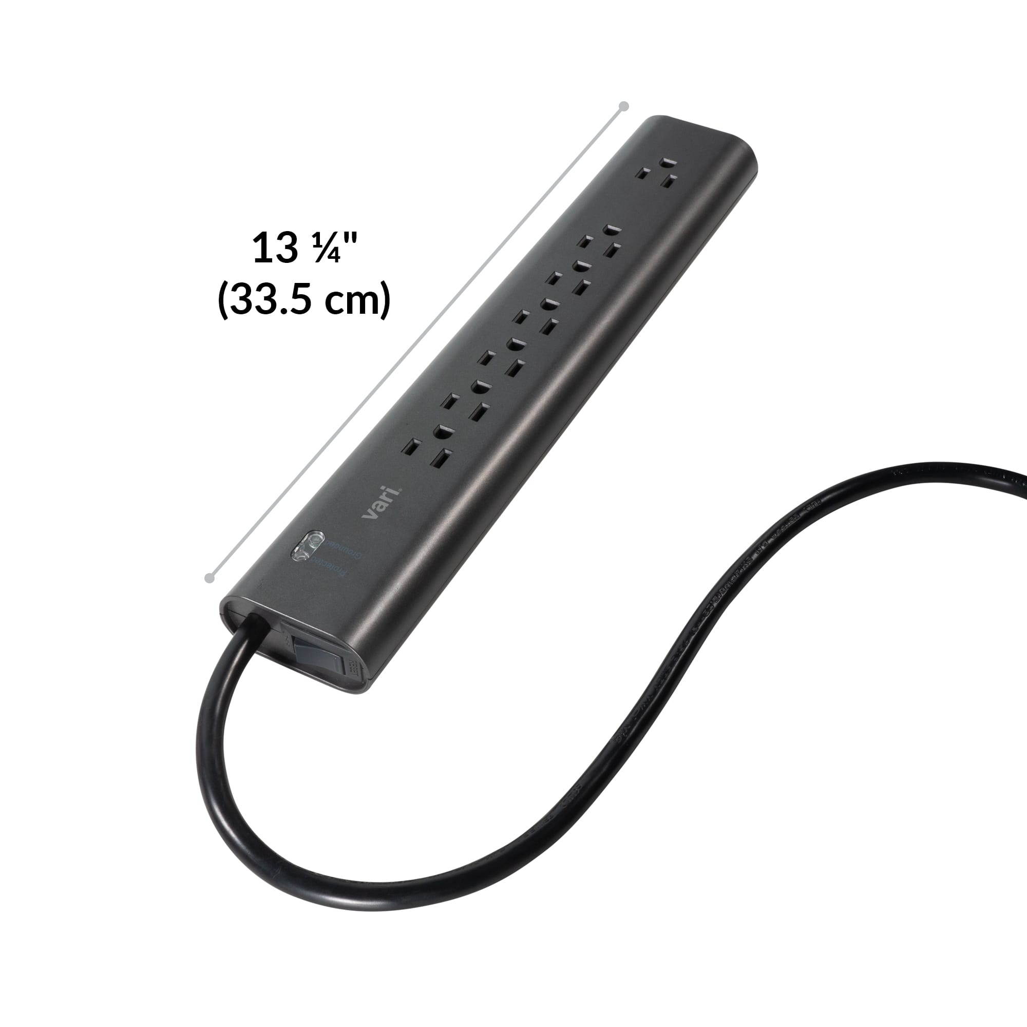 Designed with 7 outlets and built-in surge protection, The Vari PowerStrip gives you a safe, convenient way to power your active workspace. It’s available with 3 different cord lengths and enough outlets to accommodate all your devices, large and small. Plus, the attractive, slate gray finish will complement your Vari office product perfectly.