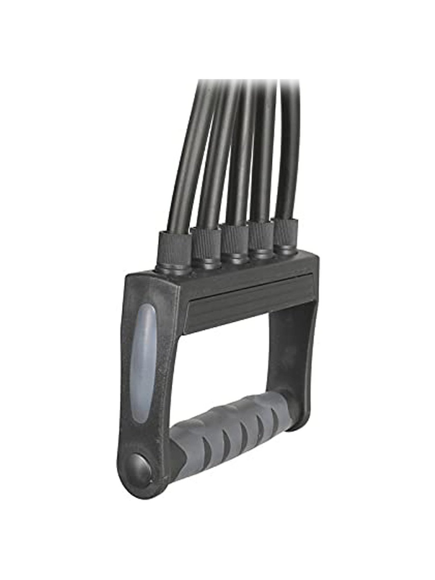 This black plastic 34 cm chest expander from Vector X lets you remove any of the 5 Tubes to ease the tension to suit your resistance level. It is lightweight, portable exercise equipment that can be used in your home, gym or take outdoors to exercise. The springs detach with ease making them easy to store and carry with you. You can switch between these functions effortlessly to target specific body muscles and develop a healthy body. With a 680 gm weight, it has a height and length of 3 cm and 77 cm respectively. Made for long lasting use, it gives hand-grip strengthening.