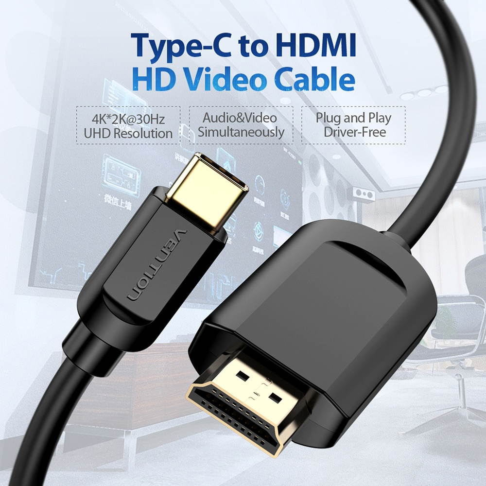 VENTION Type-C to HDMI Adapter Cable supports 4K Ultra High Definition. Youcan enjoy large screen at home or make presentation on a company conference. Compatible with Apple laptop and most laptop with Type-C interface.