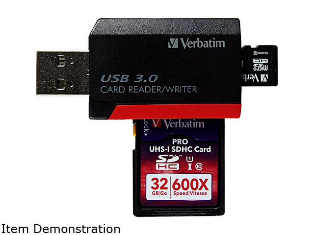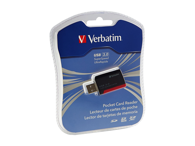 Transfer files from your memory cards faster than ever before with the Verbatim USB 3.0 Pocket Card Reader. This multi-functional reader supports both SD and microSD memory card formats with no adapter required. The USB 3.0 Pocket Card Reader offers plug-and-play functionality with both Windows and Mac operating systems via a built-in USB connector, so you don't have to worry about any additional cables. With USB 3.0 connectivity for high speed data transfer, the USB 3.0 Pocket Card Reader is ideal for use with high capacity memory cards and large image / video files, making it a great choice for professionals and photography enthusiasts alike.