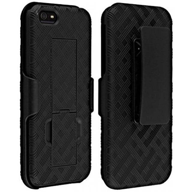 The rubberized verizon shell/holster combo for iPhone 5/5s/se case offers dual protection in one. The shell guards against scraps, dirt and daily wear and tear, the holster offers easy and convenient portability. A pivoting 180- degree belt clip allows for secure attachment (to a belt, purse strap or backpack) and comfortable positioning. Its rubberized texture provides added grip and a fold-out kickstand allows for convenient hands-free viewing. This shell holster is compatible with all iPhone 5/5s/se versions