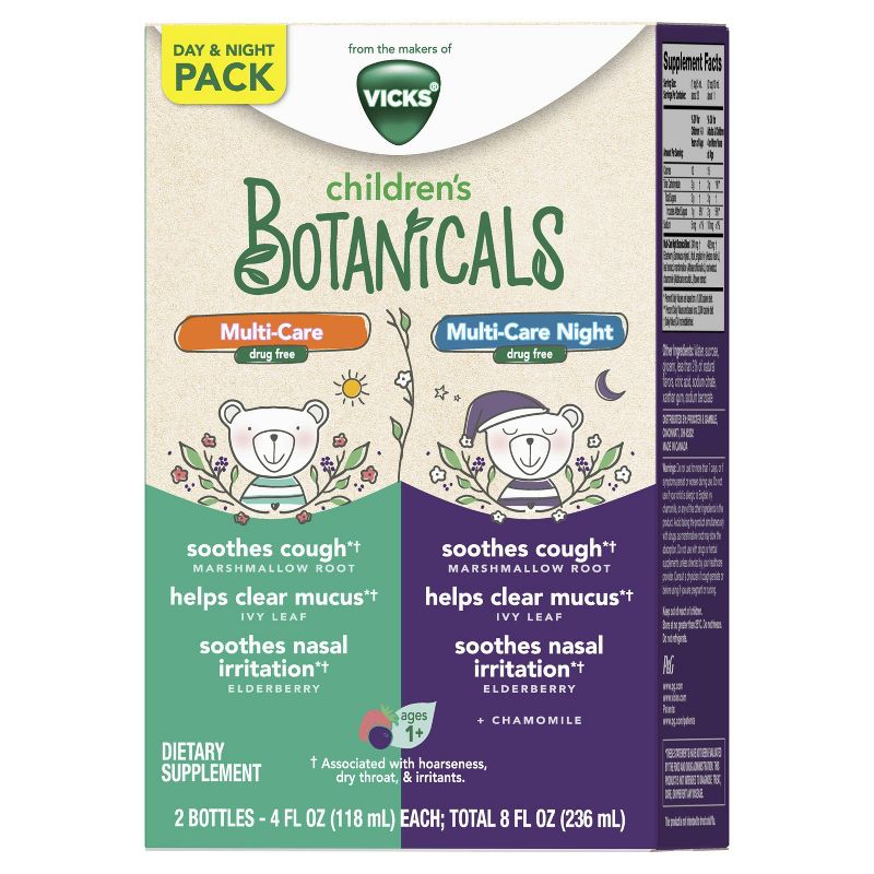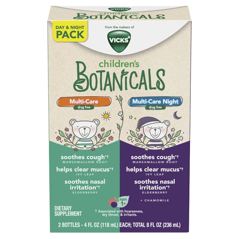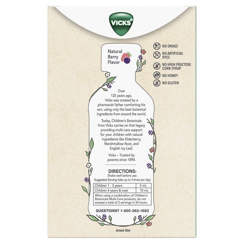 Vicks Children's Botanicals soothes cough, soothes nasal irritation, and helps clear mucus* using effective ingredients from nature. Made with a great-tasting berry flavor kids love. Drug Free, Gluten Free and Free of Honey, Artificial Dyes and High Fructose Corn Syrup.