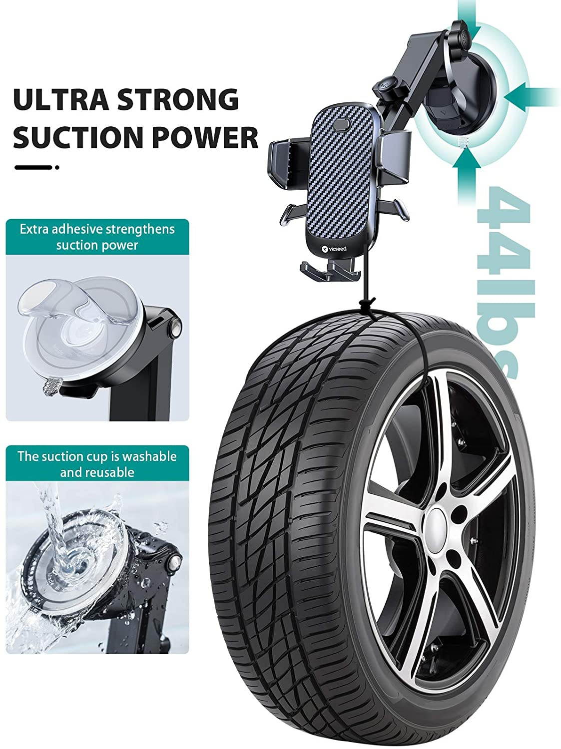 - 360 Degrees Rotation Cell Phone Car Holder: The 360 degrees ball joint and the adjustable telescopic arm make you able to adjust your phone to any angles and any places. Find a best view for your trip. You can use this mobile phone holder for car vertically or horizontally. It is convenient to navigate pickup phone calls. You focus on your drive VICSEED car phone holder mount will do the rest of jobs for you.