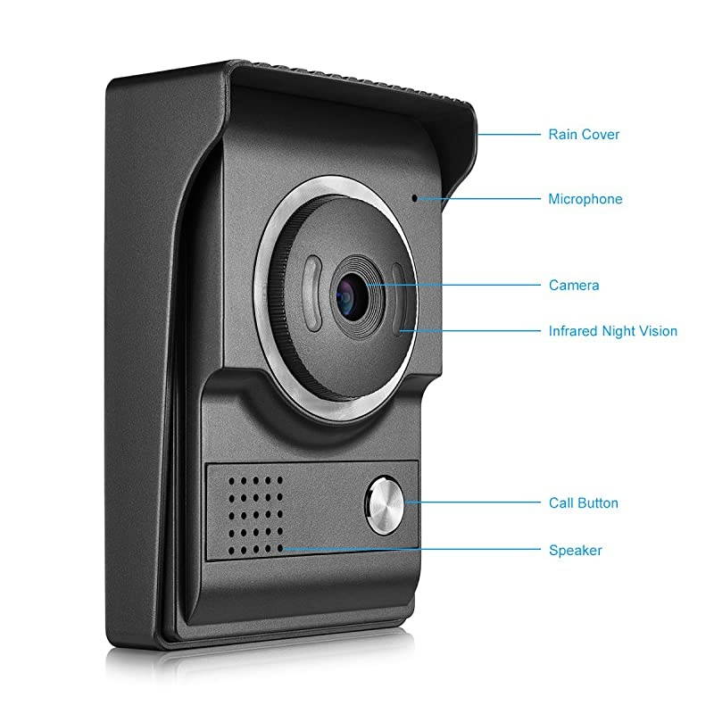 ***** **********Best Quality Guranteed. *****Video door phone system --- The wall-mounted 7-inch color monitor and outdoor doorbell with integrated HD camera ensures you can both see and speak with all visitors. *****Durable doorbell camera --- Rain cover design, embeds in led lights, IR (infrared) LED projection provides clear vision of visitors even in the darkness of night. *****Plain intercom monitor --- Very easy to adjust the brightness, volume, contrast and 16 ringtones of select, LCD screen, hands free intercom, electric unlocking functions, monitor the outside view. *****Easy installation --- Surface mounting by yourself, easy 4-wire setup, system includes adapter, rain cover, connection terminal, screws materials, we provide in this kit.