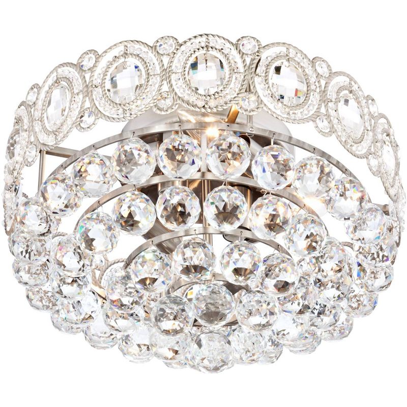 Grand and glamorous, this six light flushmount ceiling light shines bright when illuminated. Sparkling clear crystals are paired with a satin nickel finish frame for a look of pure elegance and sophistication.