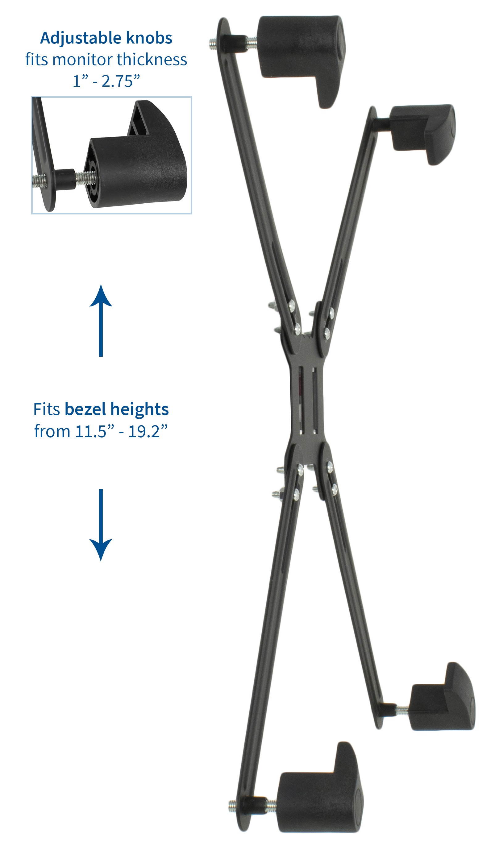 It will fit practically any flat screen LCD or LED monitor with a bezel height from 11.5" to 19.2" and overall thickness from 1" to 2.75", or generally, most widescreen monitors from 20" to 30".