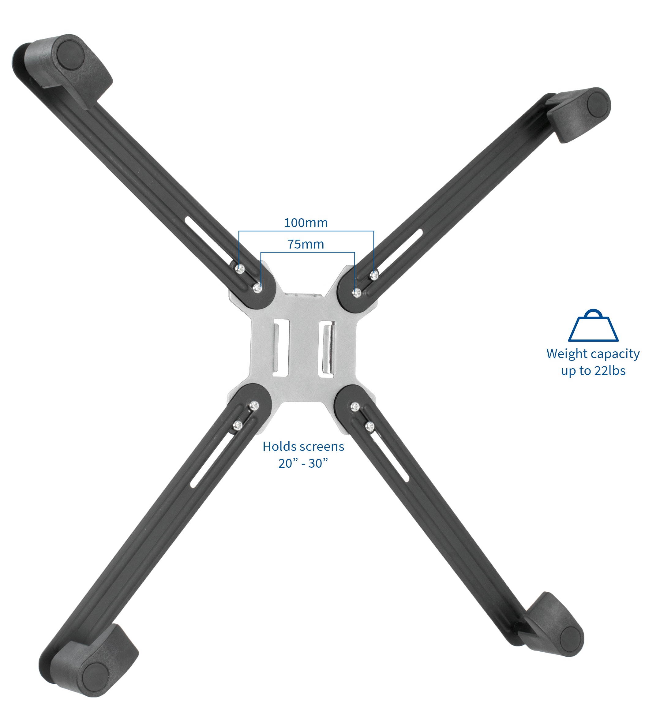 The adapter is designed to fit any VESA monitor mount with 75x75mm and 100x100mm mounting holes